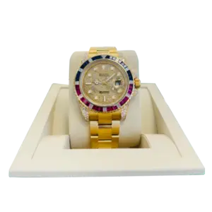 Rolex GMT-Master II 40mm Yellow Gold Pepsi Bezel Diamond Set Watch 116718LN