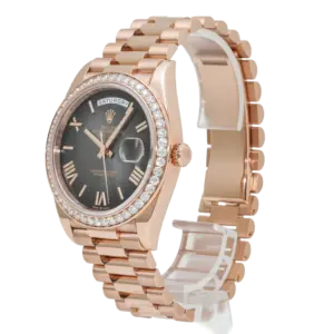 Rolex Day-Date 40 228345 Rose Gold Black Dial Diamond Bezel