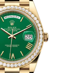 Rolex Day-Date 40 Yellow Gold Green Roman Numeral Dial Diamond Bezel M228348RBR-0040