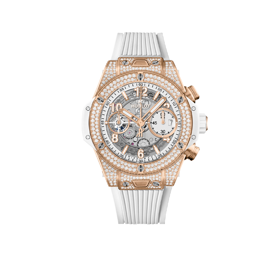 By developing its own automatic chronograph movement, Hublot wanted it to be – like all of its creations – the first, different and unique. As the soul of the watch, this movement with an “open heart” reveals its completely re-imagined design, with double coupling system and column-wheel from the dial side as well as a 72-hour power reserve. Its construction of 354 components has been simplified as much as possible to improve reliability and robustness.