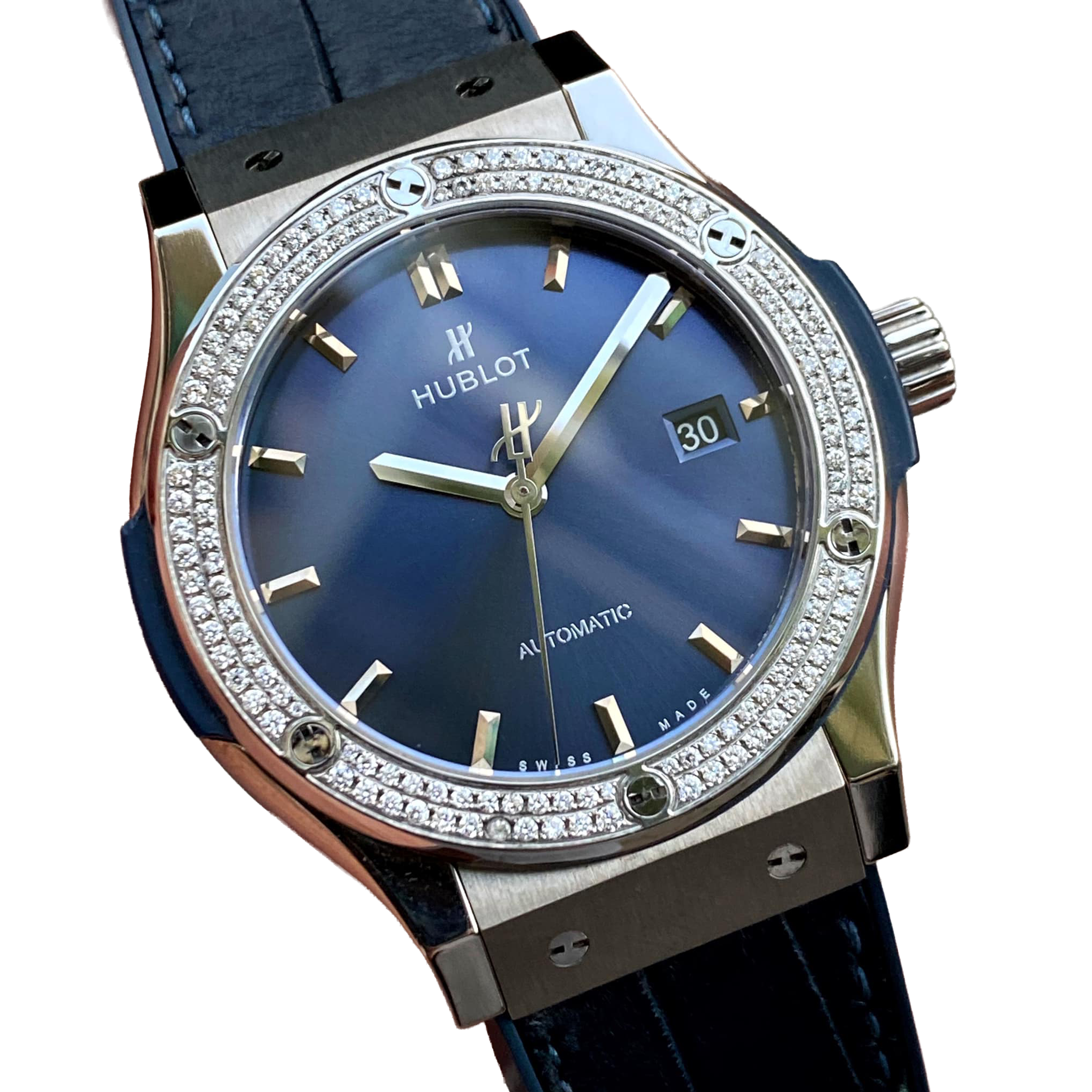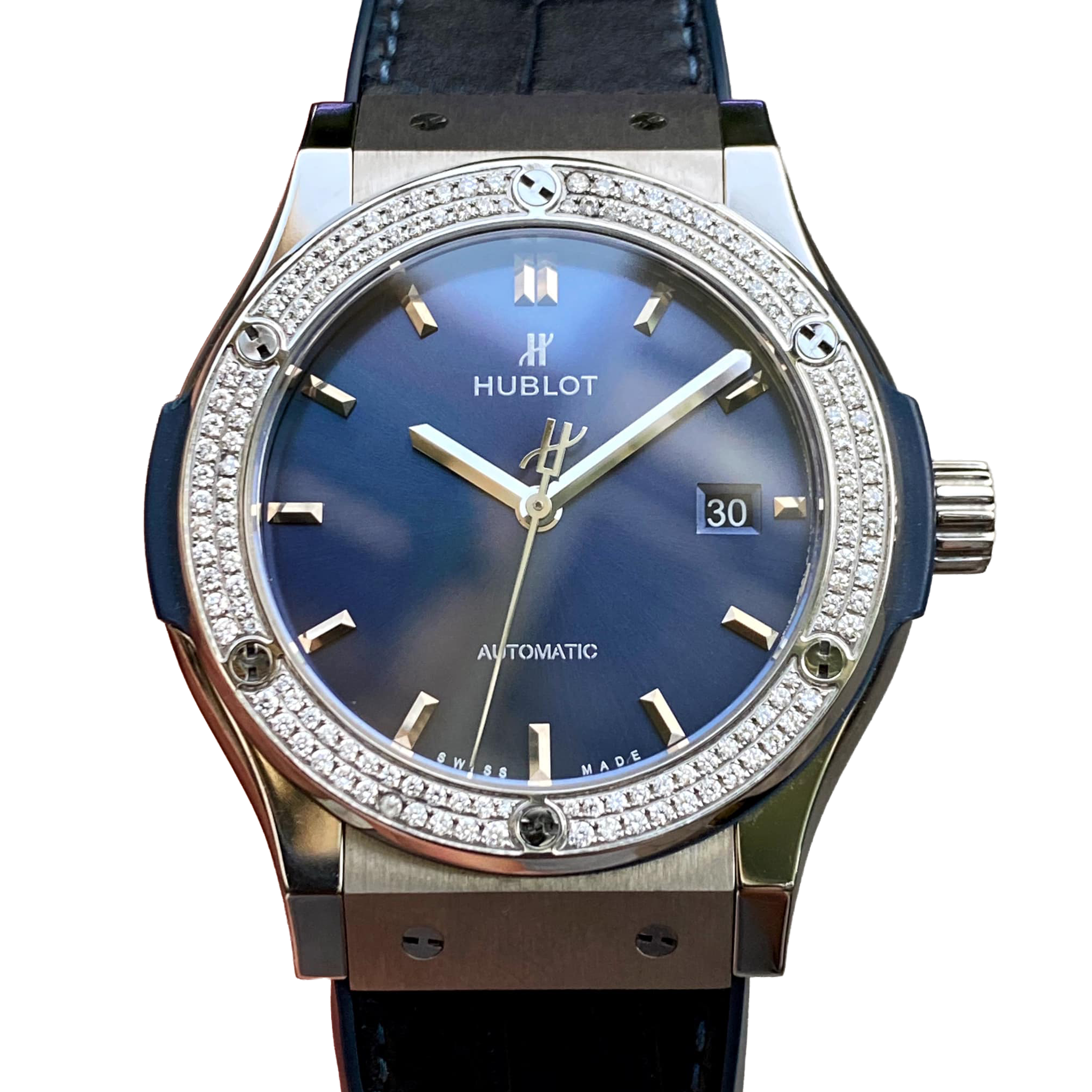 Hublot Classic Fusion Blue Titanium 42mm Diamond Benzel 542.NX.7170.LR.1104
