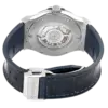 Bracelet: Blue rubber strap with alligator leather texture push button deployant clasp.