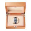 In this denim-inspired model, the 40 mm symmetrical case is made from stainless steel with a wave-edged design featured on the back. The vertically brushed “blue jeans” dial includes brushed stainless steel hands and recessed hour-markers which are all filled with light grey Super-LumiNova. There is also a beige central seconds hand and transferred “Railmaster” indication which delivers a classic touch.