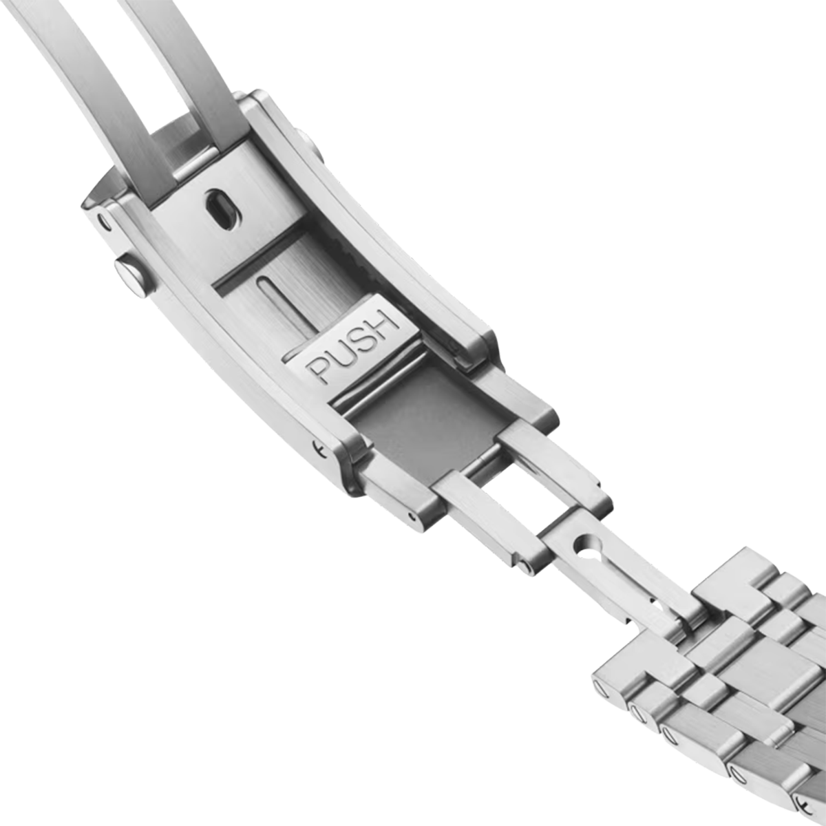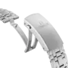 The skeleton hands and raised indexes are rhodium-plated and are filled with white Super-LumiNova, while the helium escape valve has been given a conical design.