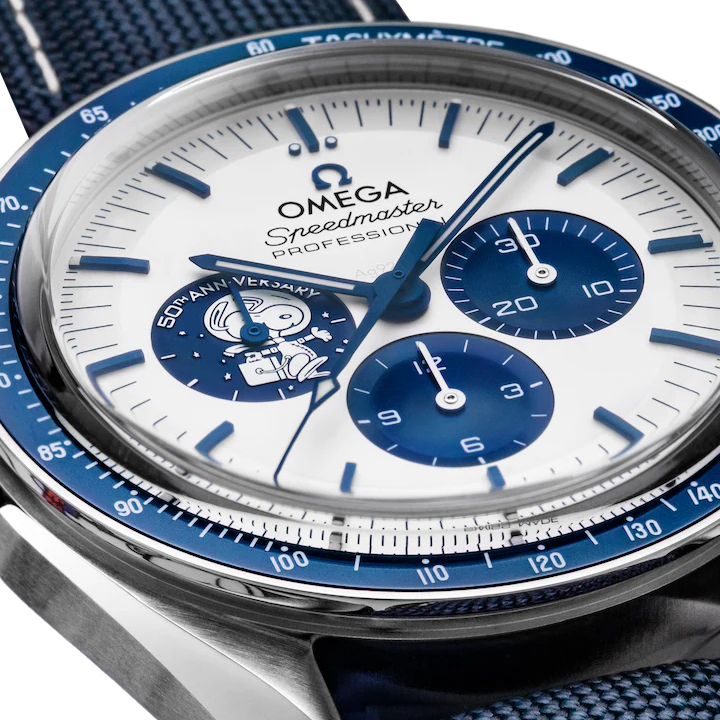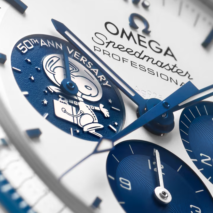 This 50th anniversary timepiece pays tribute to the “Silver Snoopy Award” that OMEGA received from NASA astronauts in 1970, in recognition of the brand’s contributions to space exploration, including the Apollo 13 mission.