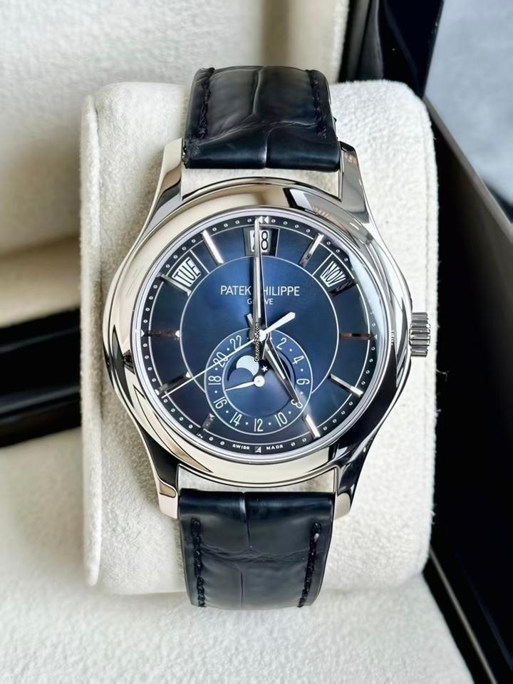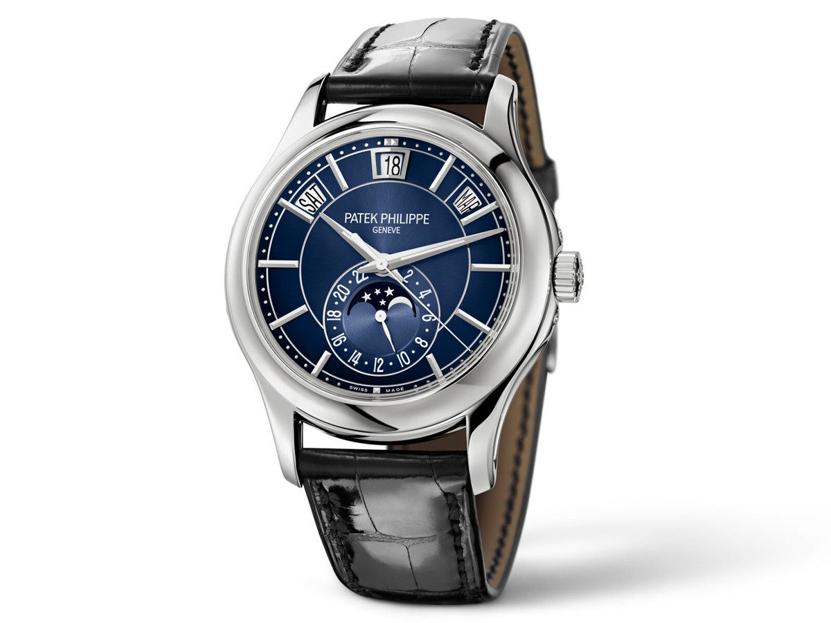 Patek Philippe Complications Annual Calendar Automatic Blue Sunburst Dial Men’s Watch 5205G-013