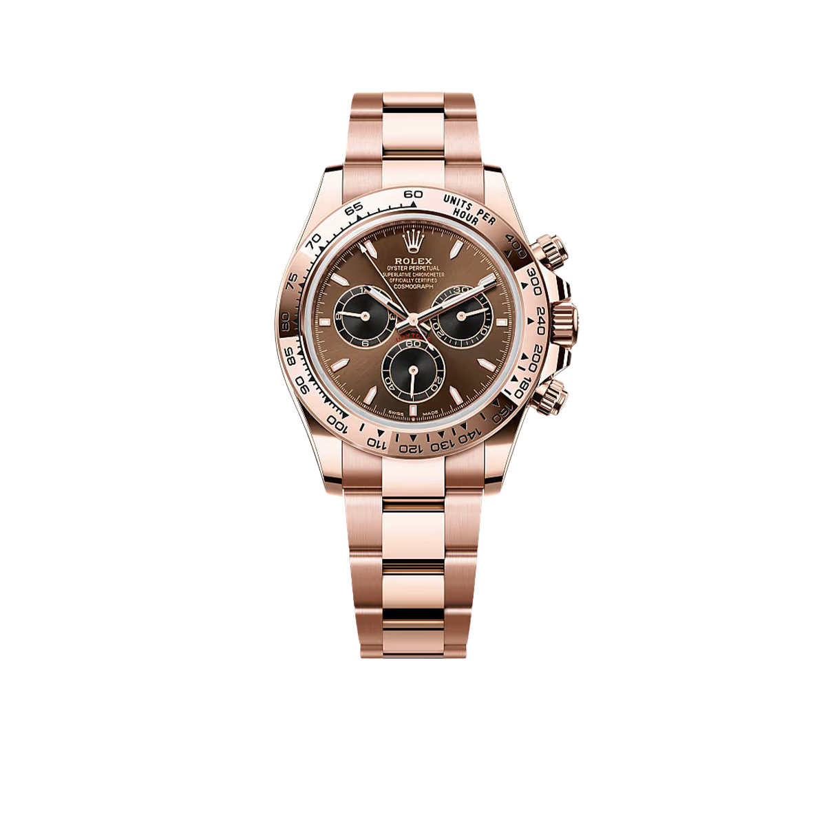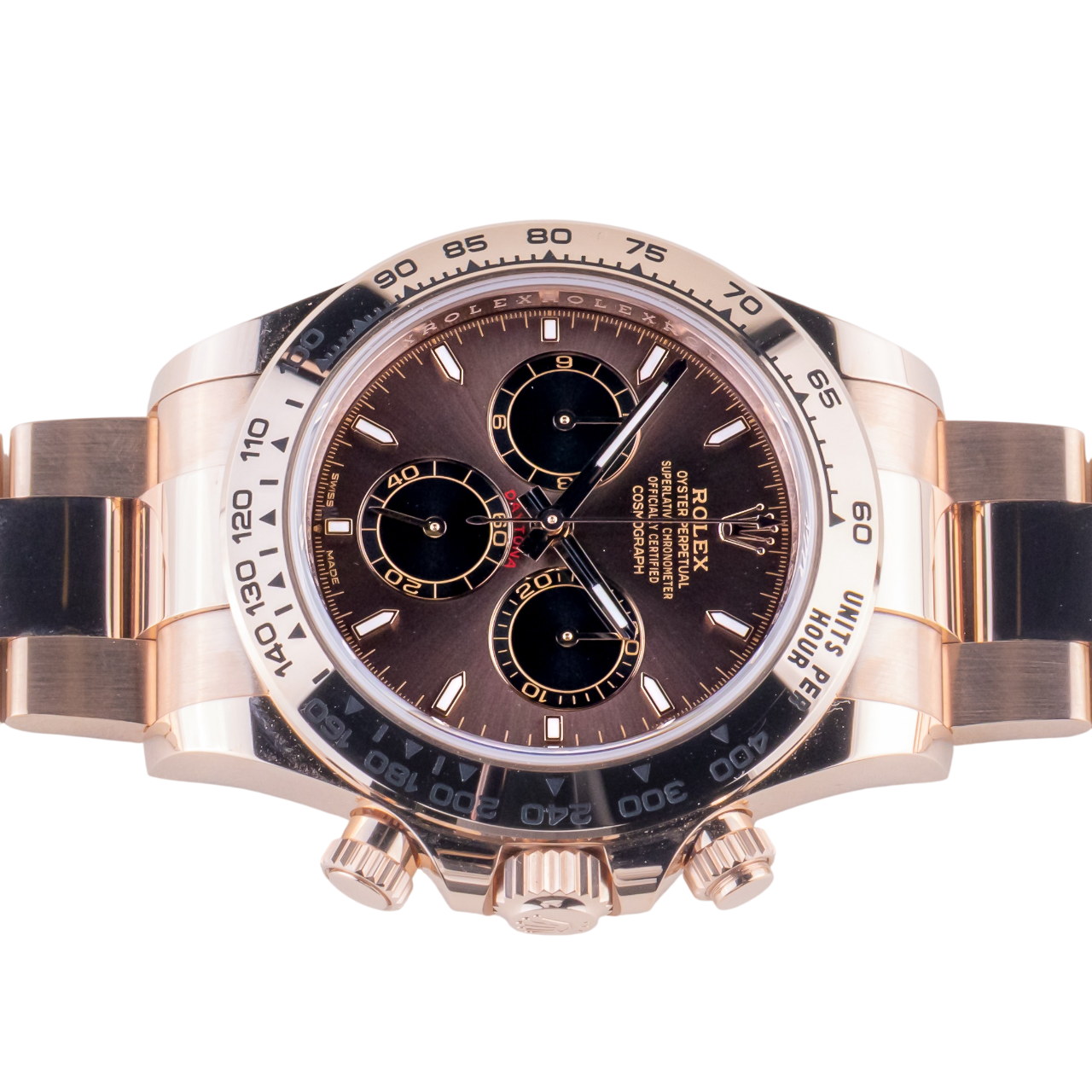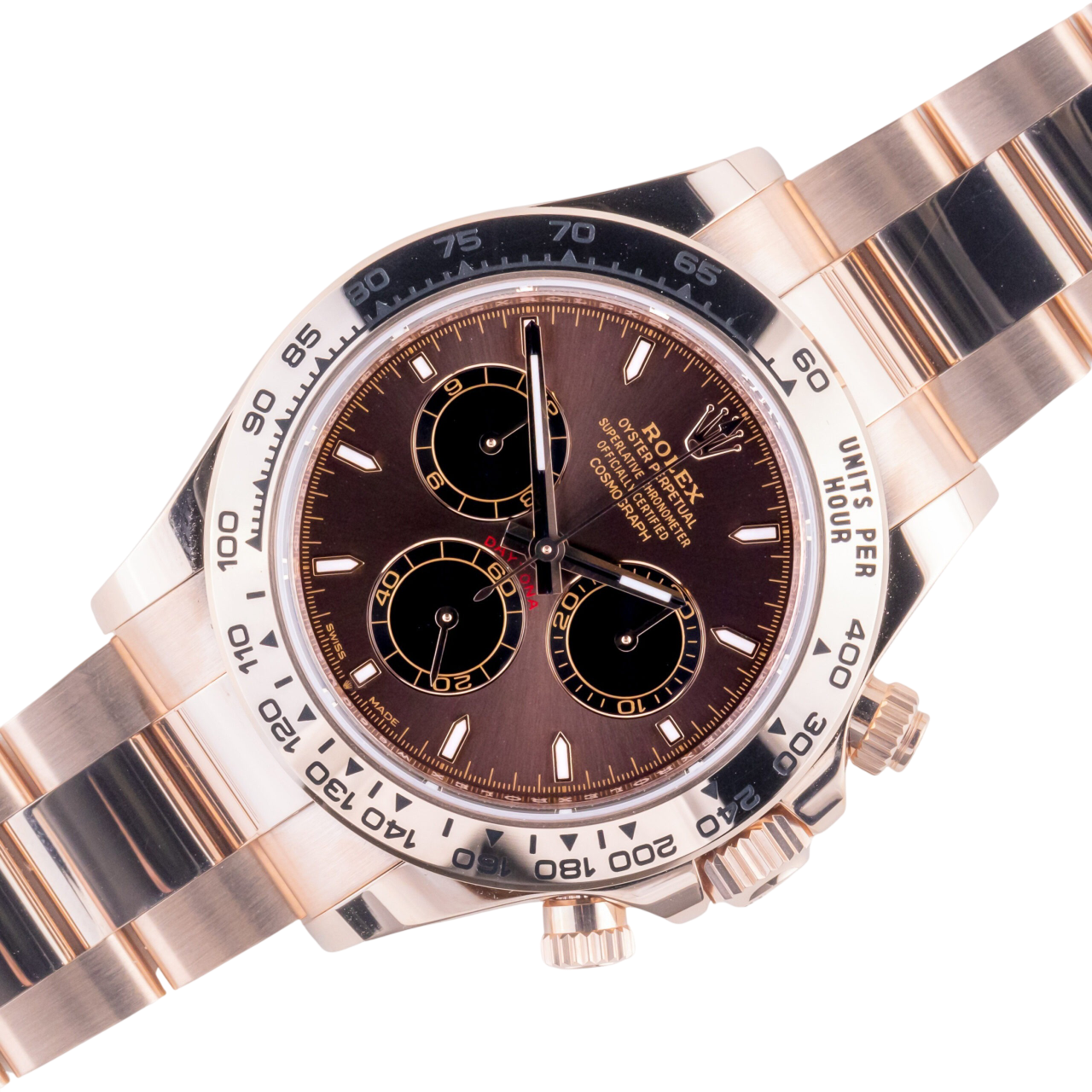Hands & Markers: Everose gold-tone hands and hour markers, with Chromalight luminescence