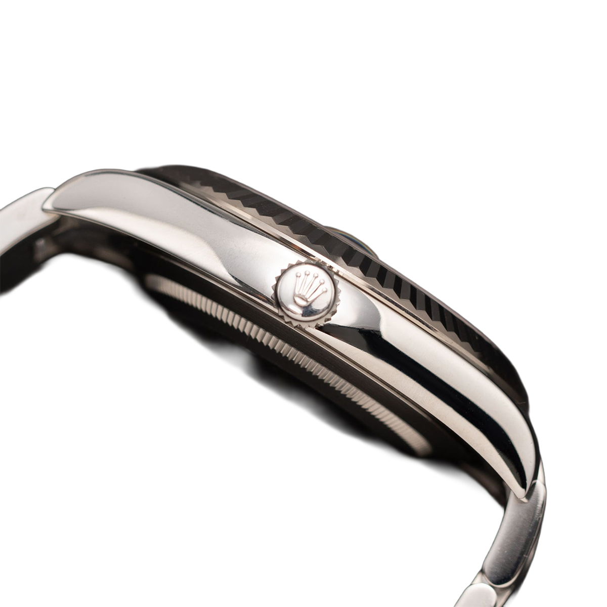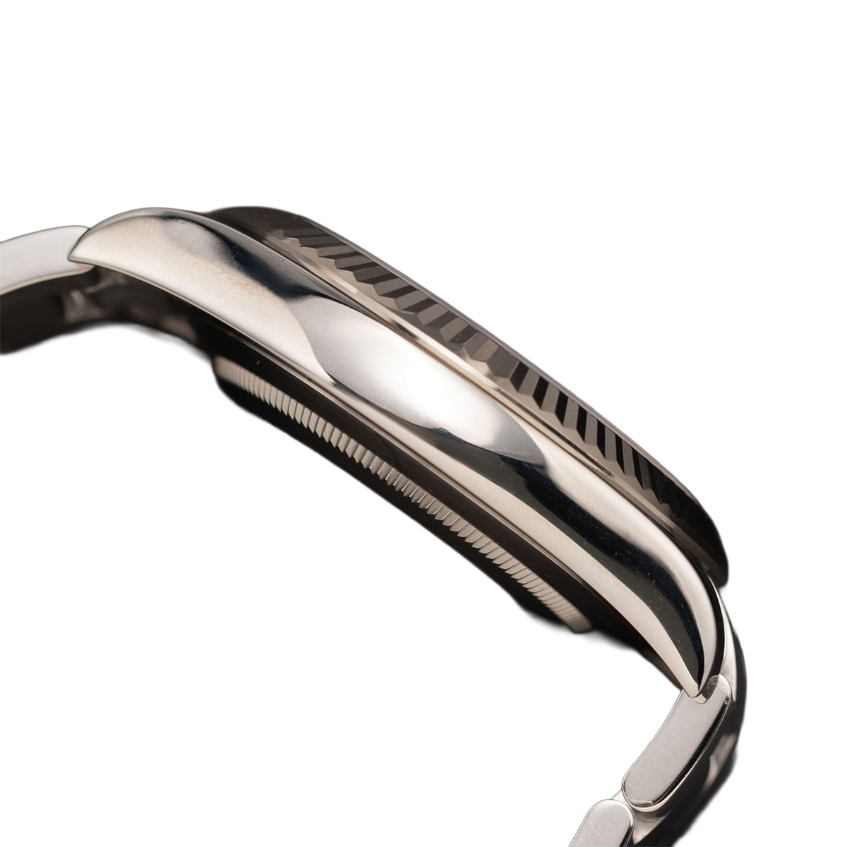 Here’s a Datejust II Rolex Watch. From our Watches Collection, this Original 41mm Blue Index Dial Fluted Bezel Datejust II Rolex features Stainless Steel Case and Oyster bracelet.