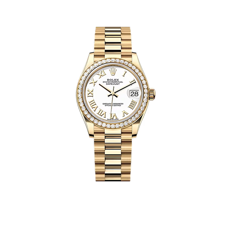 This timepiece is a refined union of precision and artistry, embodying timeless elegance. Crafted in 18 kt yellow gold with a 31 mm case, it is elevated by a diamond-set bezel that radiates understated luxury.