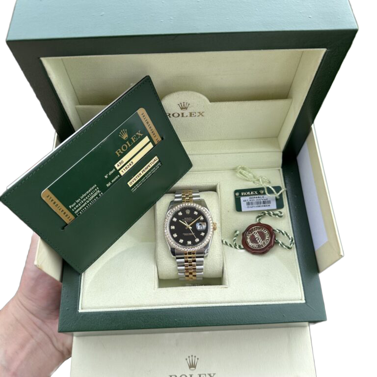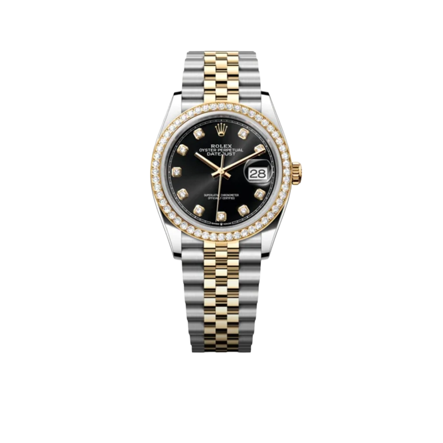 Rolex Datejust 36mm Black Dial Steel Yellow Gold Diamond Mens Watch 116243