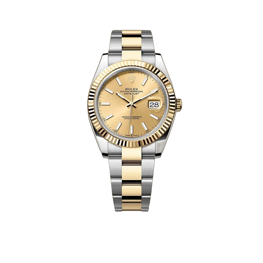 This timepiece blends precision and elegance with the Calibre 3235 movement, offering a 70-hour power reserve and 100-meter water resistance. Its 41 mm Yellow Rolesor case, yellow gold bezel, and champagne dial create a timelessly refined look. Finished with a Yellow Rolesor bracelet and Oysterclasp, it stands as a true statement of prestige and style.