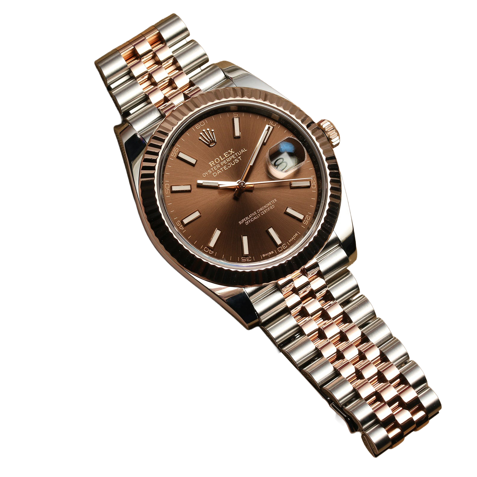 The Rolex Datejust 41 126331-0002 presents a refined two-tone aesthetic that balances modern durability with classic elegance. Centered around a 41mm case finished in polished steel and rose gold-tone accents, this timepiece delivers a sophisticated yet versatile presence suitable for both professional and casual wear.