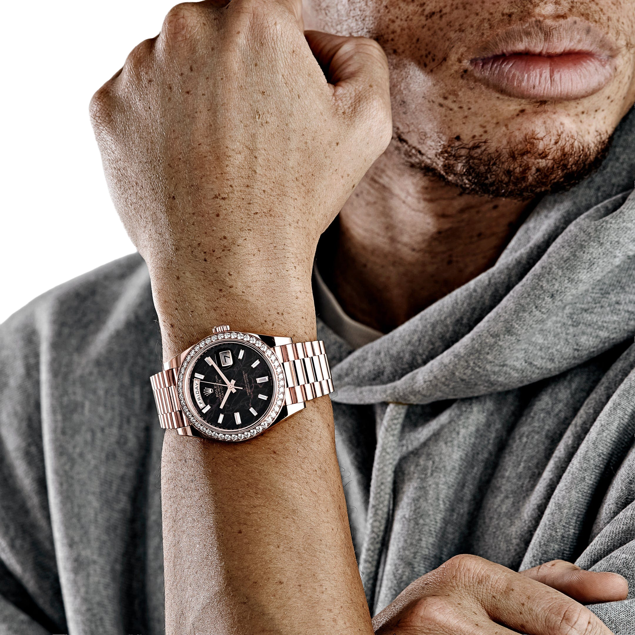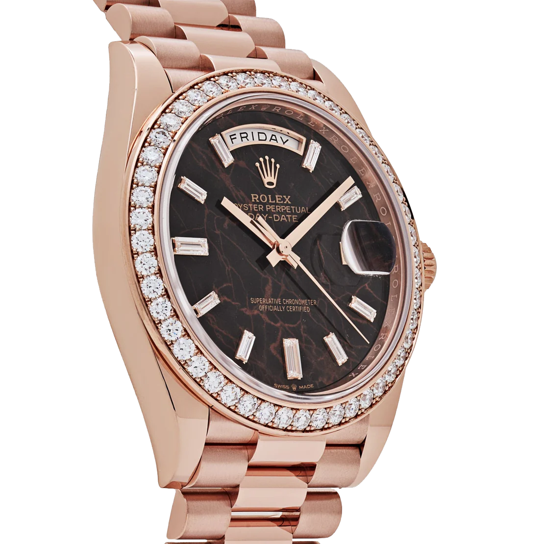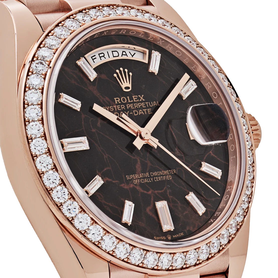 Rolex Day-Date 40 228345RBR Rose Gold Eisenkiesel Diamond Dial Diamond Bezel