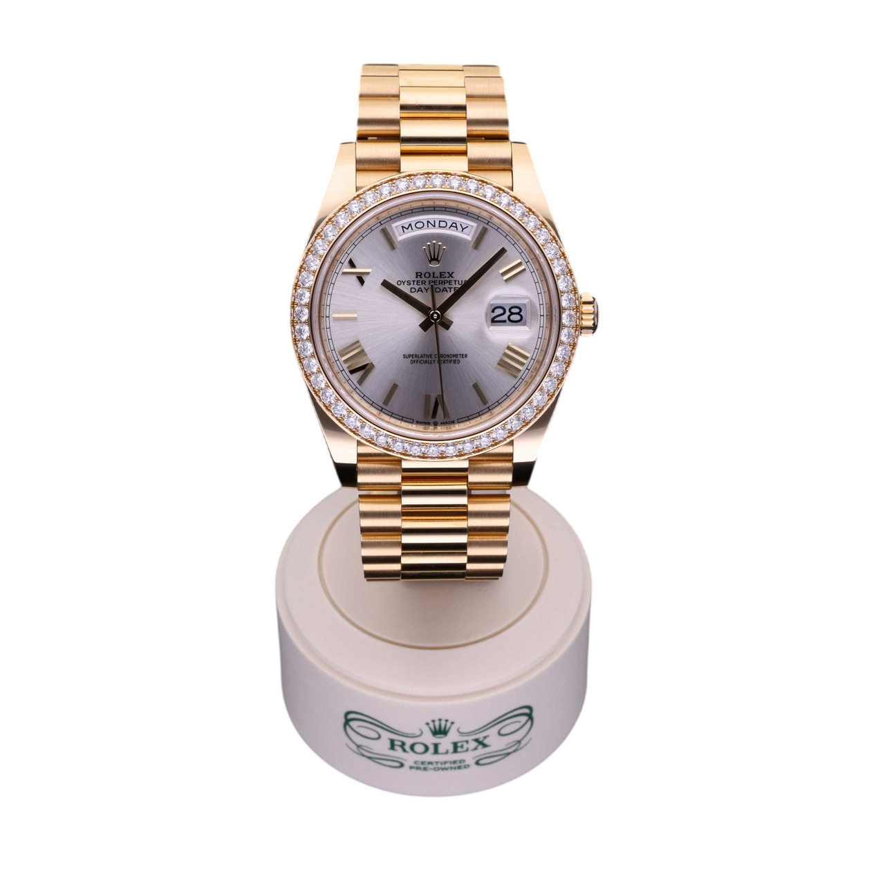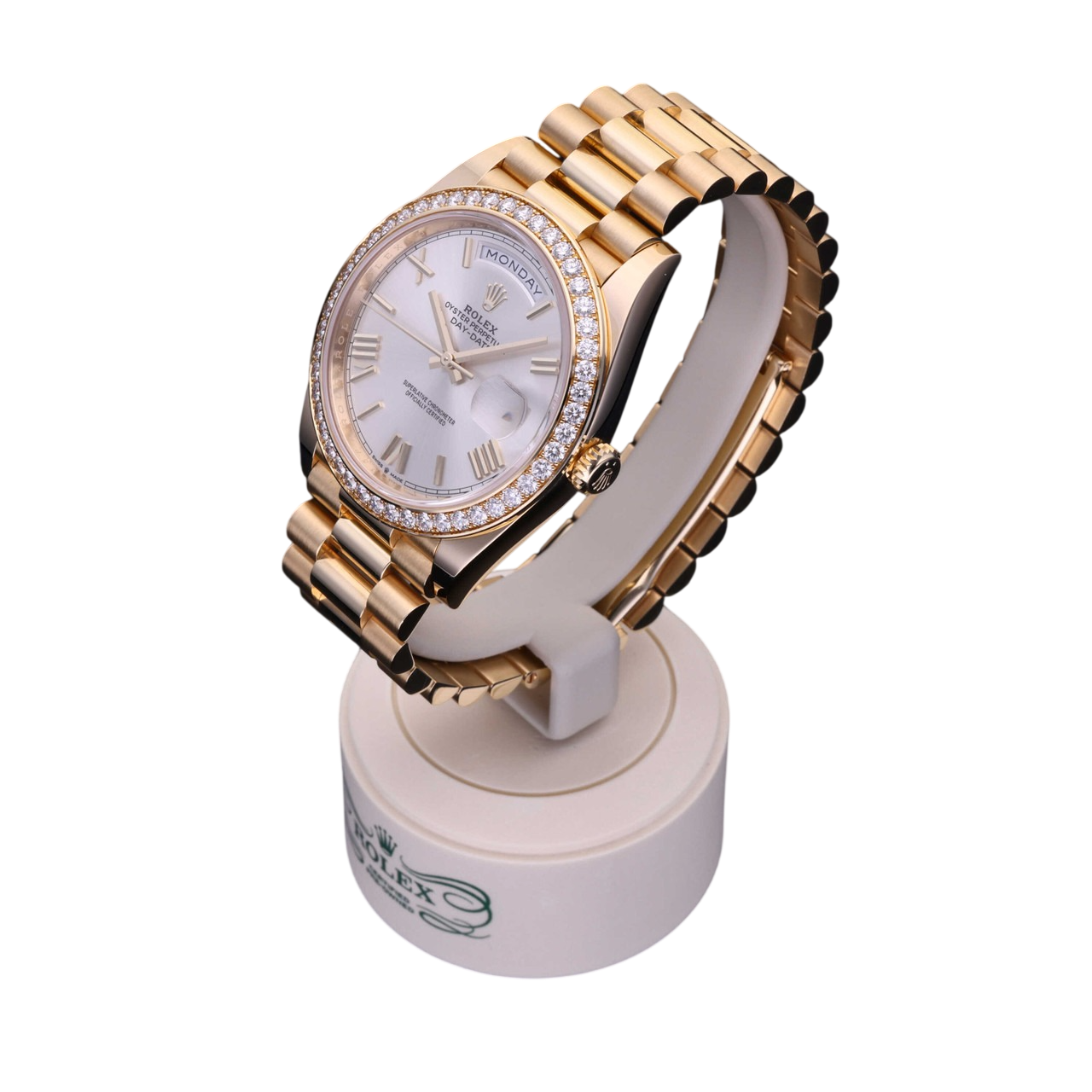 Rolex Day-Date 40 mm Yellow Gold Diamond Bezel Silver Dial M228348rbr-0007
