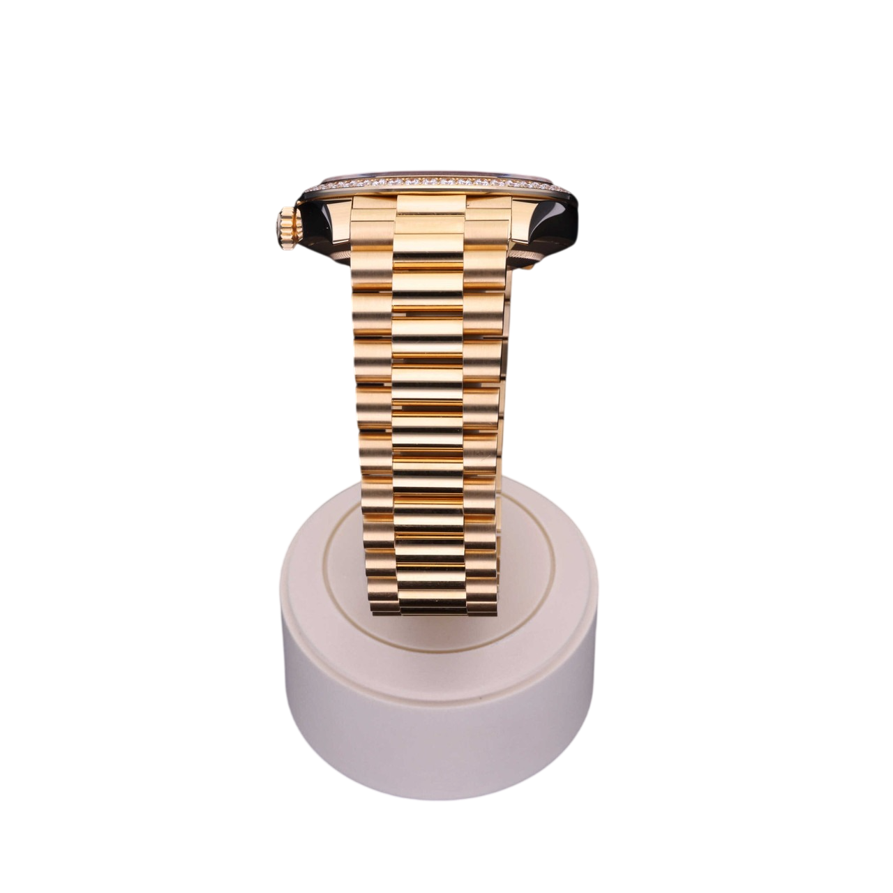 Paired with the iconic President-style bracelet, designed for smooth comfort and a seamless on-wrist appearance, the 228348RBR embodies a refined blend of classic elegance and modern luxury-inspired styling. With its distinguished proportions and unmistakable Day-Date character, this model remains a bold yet tasteful statement piece for those who appreciate high-end watch design.