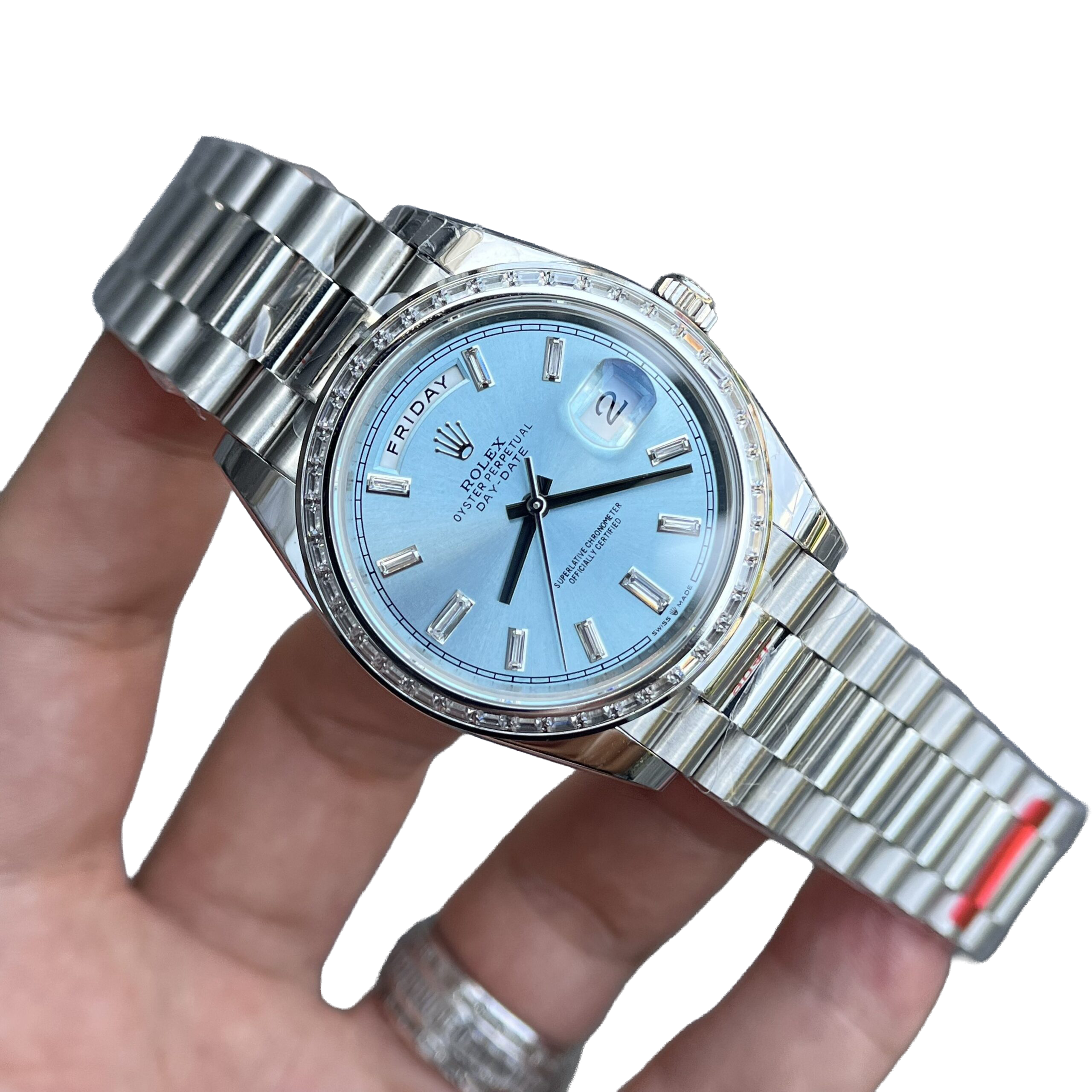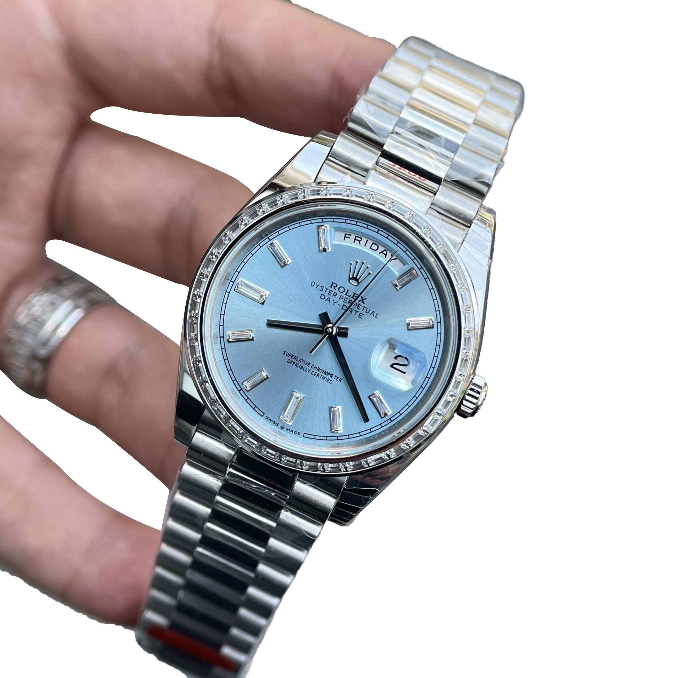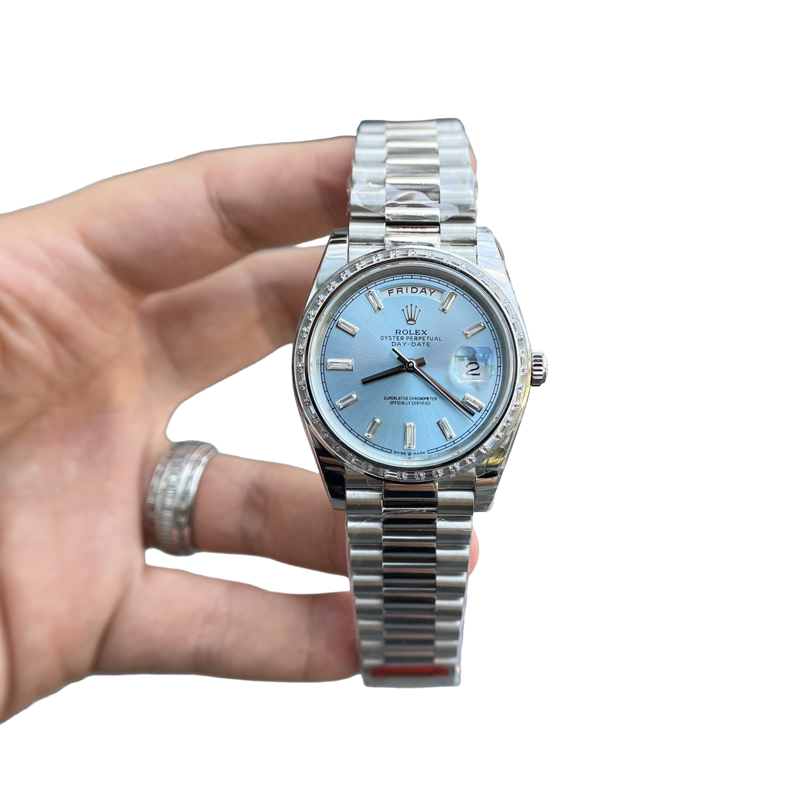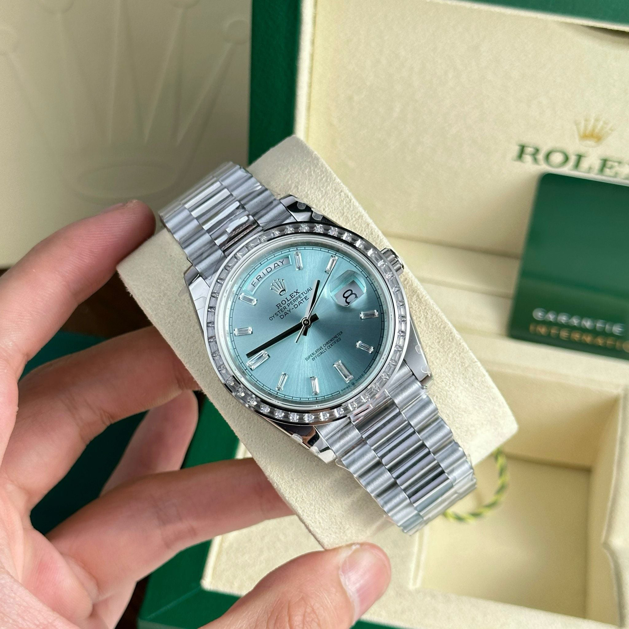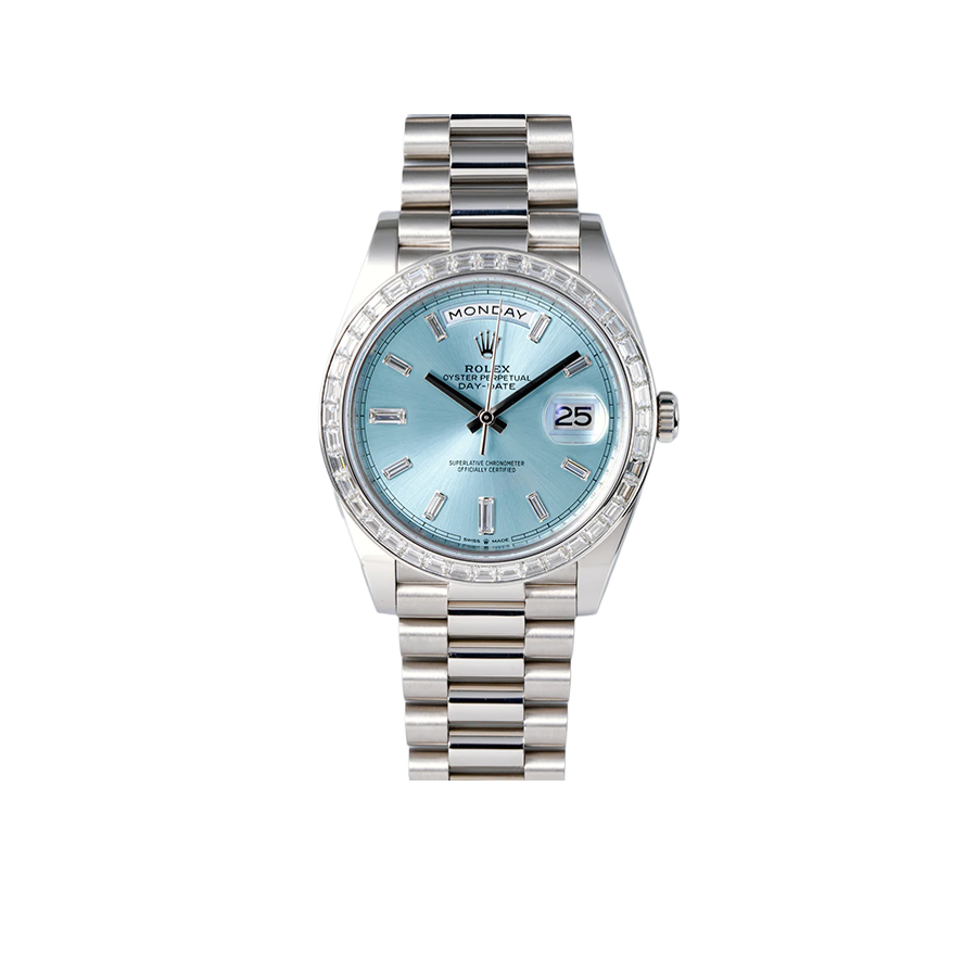 Rolex Day-Date 40mm Ice Blue Dial Baguette Set Bezel 228396TBR