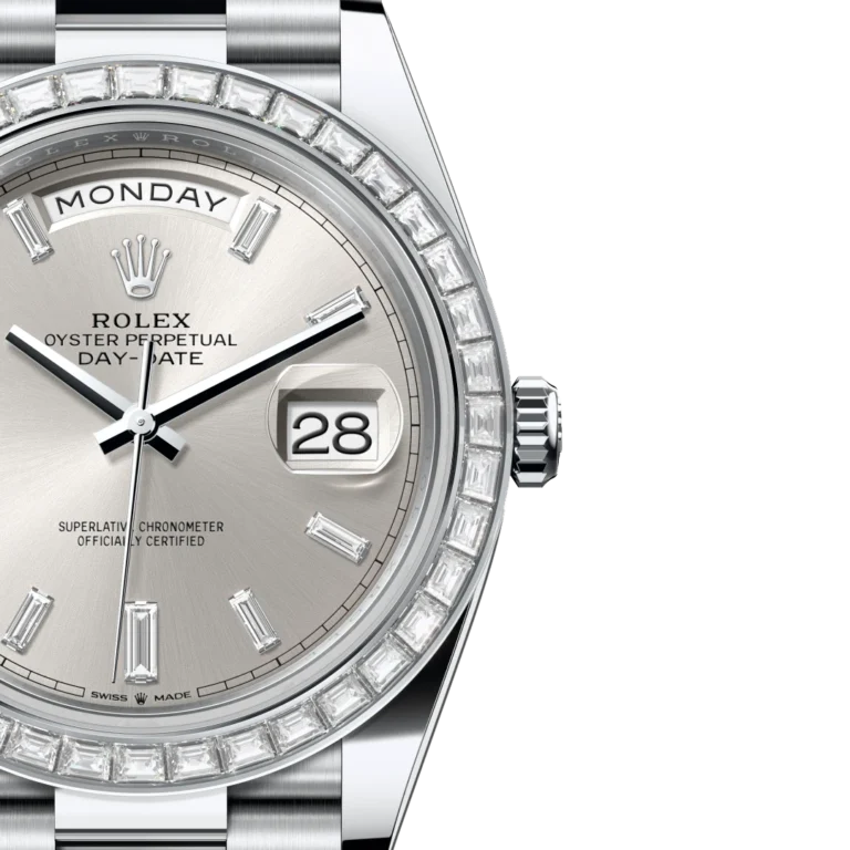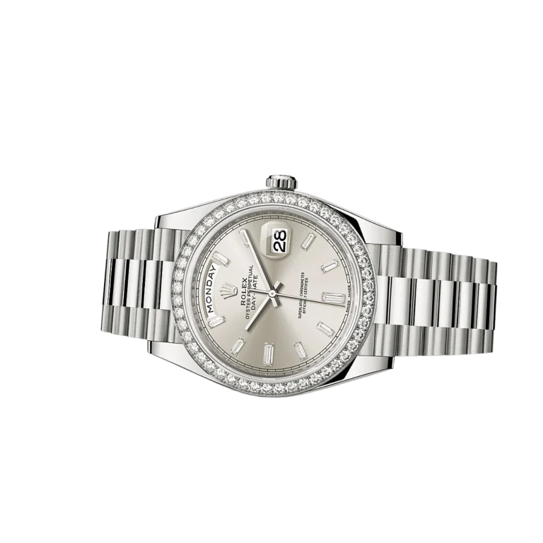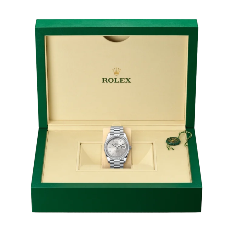 The President bracelet wraps comfortably around the wrist with a regal sense of refinement. Its concealed Crownclasp folding clasp ensures a seamless, streamlined appearance, preserving the watch’s clean and elegant profile. The screw-down caseback and crown enhance durability, making this timepiece a reliable companion for many years to come.