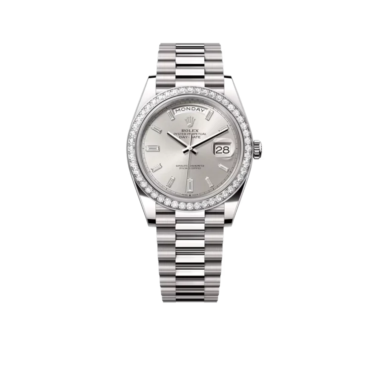 In the world of horology, few timepieces can rival the elegance and exceptional precision of this watch. The meticulously crafted case exudes a sense of refined luxury, perfectly complemented by a gemstone-set bezel that adds a touch of brilliance. With a 40 mm diameter, the watch achieves a harmonious balance between strong presence and subtle sophistication, making it suitable for any occasion.