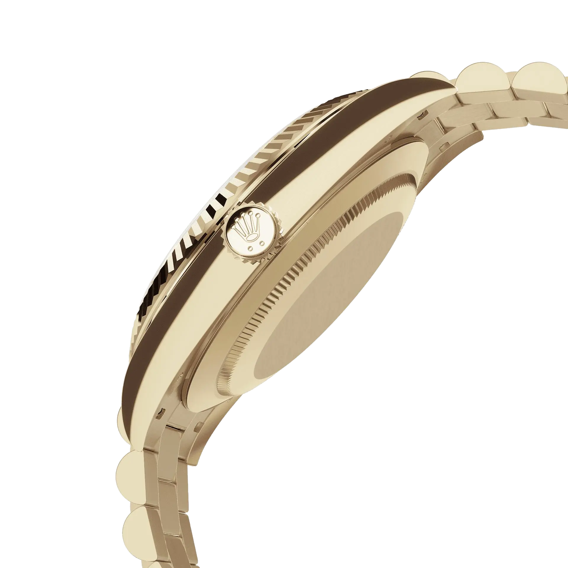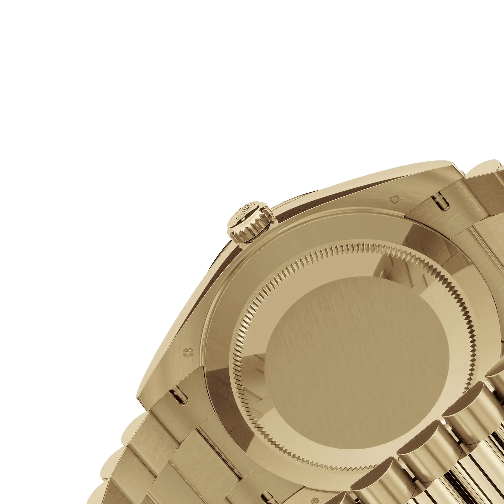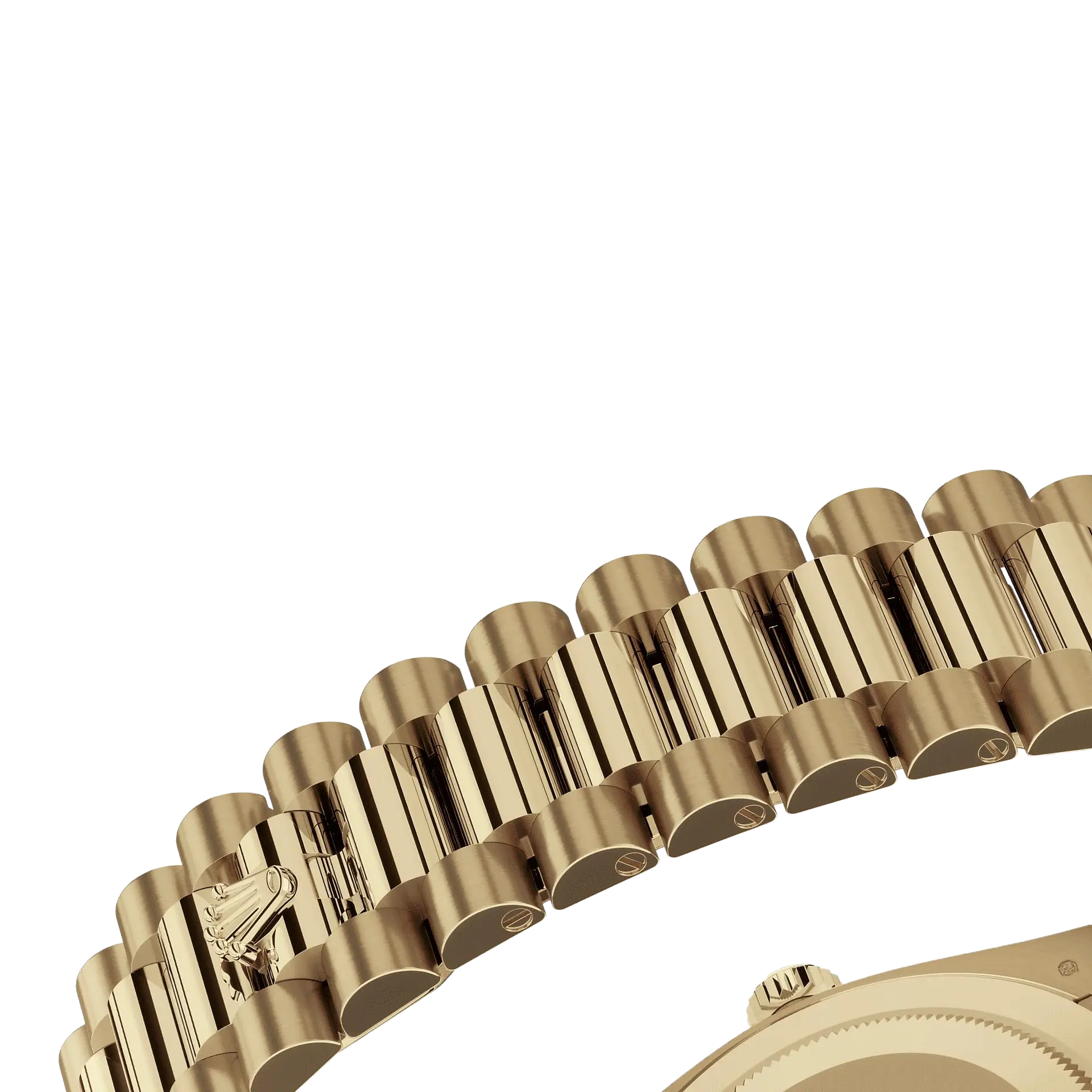Rolex Day-Date 40 Ref. 228238-0066 embodies timeless elegance and precision. Crafted from 18 kt yellow gold, the 40 mm case offers a perfect balance of presence and refinement for any occasion. At its heart beats the advanced Caliber 3255 movement, delivering exceptional accuracy and a 70-hour power reserve. The watch features a refined silver dial with center hands and Rolex’s signature Cyclops date magnifier for optimal readability. A screw-down crown and case back provide water resistance up to 100 meters, ensuring durability and confidence. Completing the design is the iconic President bracelet in 18 kt yellow gold, secured by a concealed Crownclasp for seamless luxury. More than a timepiece, the Rolex 228238-0066 is a symbol of prestige, craftsmanship, and enduring style.