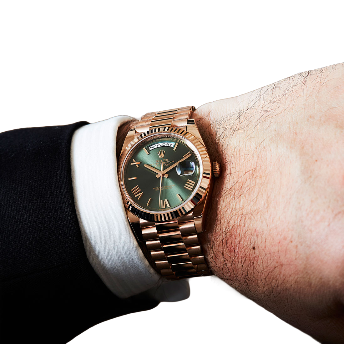 The legendary President bracelet in Everose gold provides exceptional comfort and refinement.