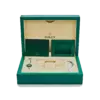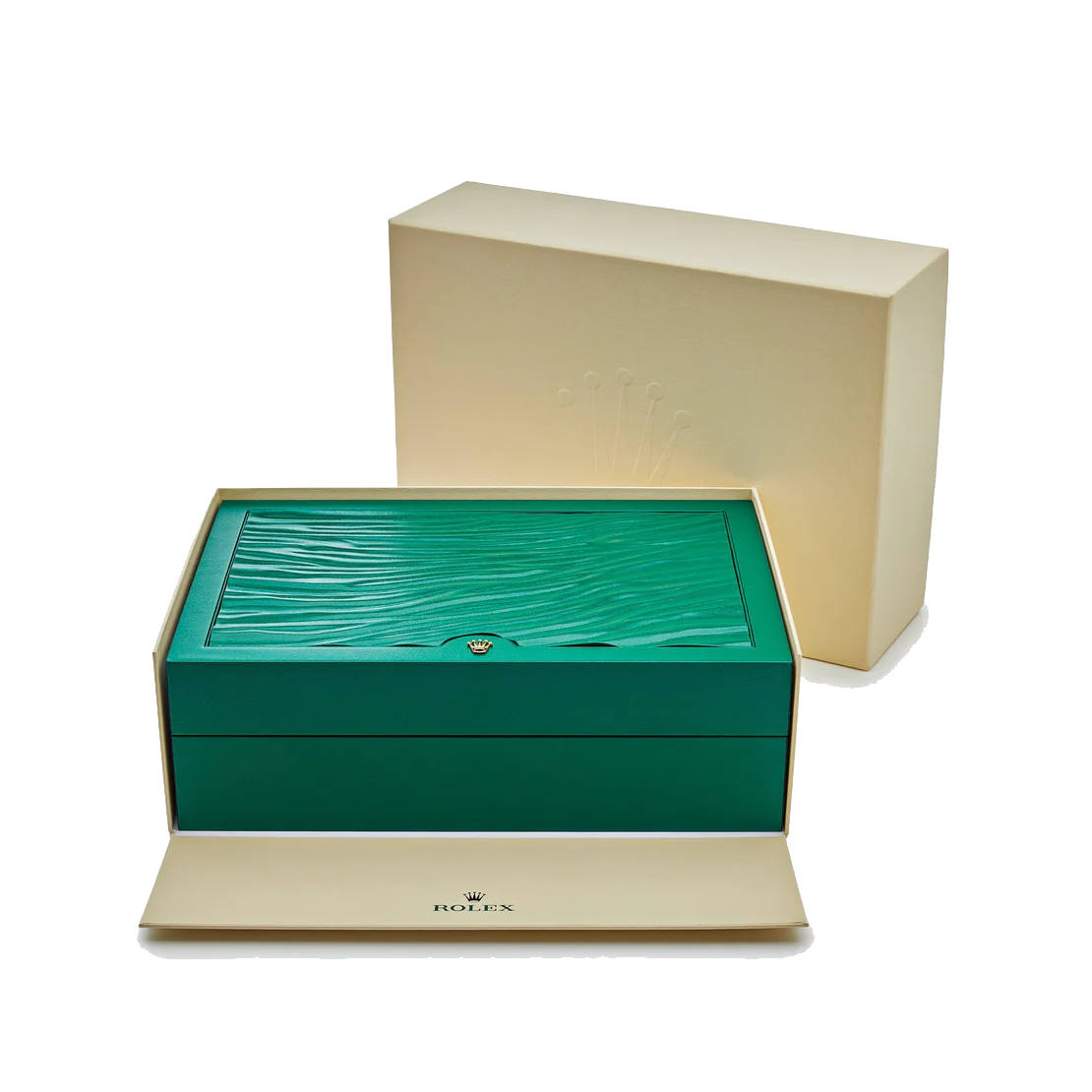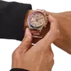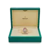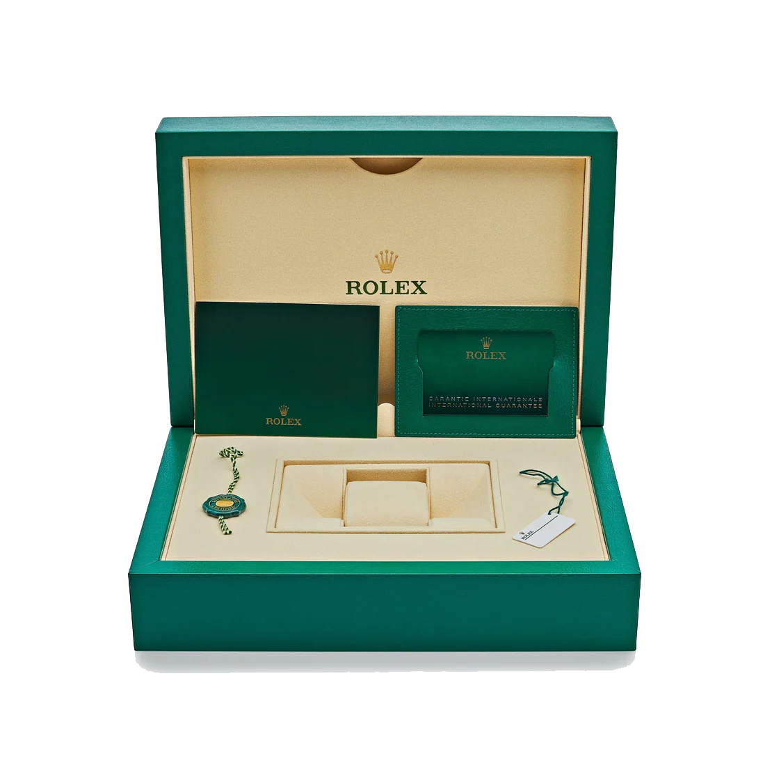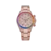 Rolex Daytona 116595RBOW is designed in a 40mm 18k rose gold case and dripping with gems on the dial, bezel, and lugs. Colorful gems are meticulously selected to create the perfect rainbow bezel with a unique ombré effect. The rainbow hour markers provide enough contrast to the diamond-studded dial to read the watch’s complications. This coveted Daytona blends prestigious timekeeping complications with an exclusive allure.