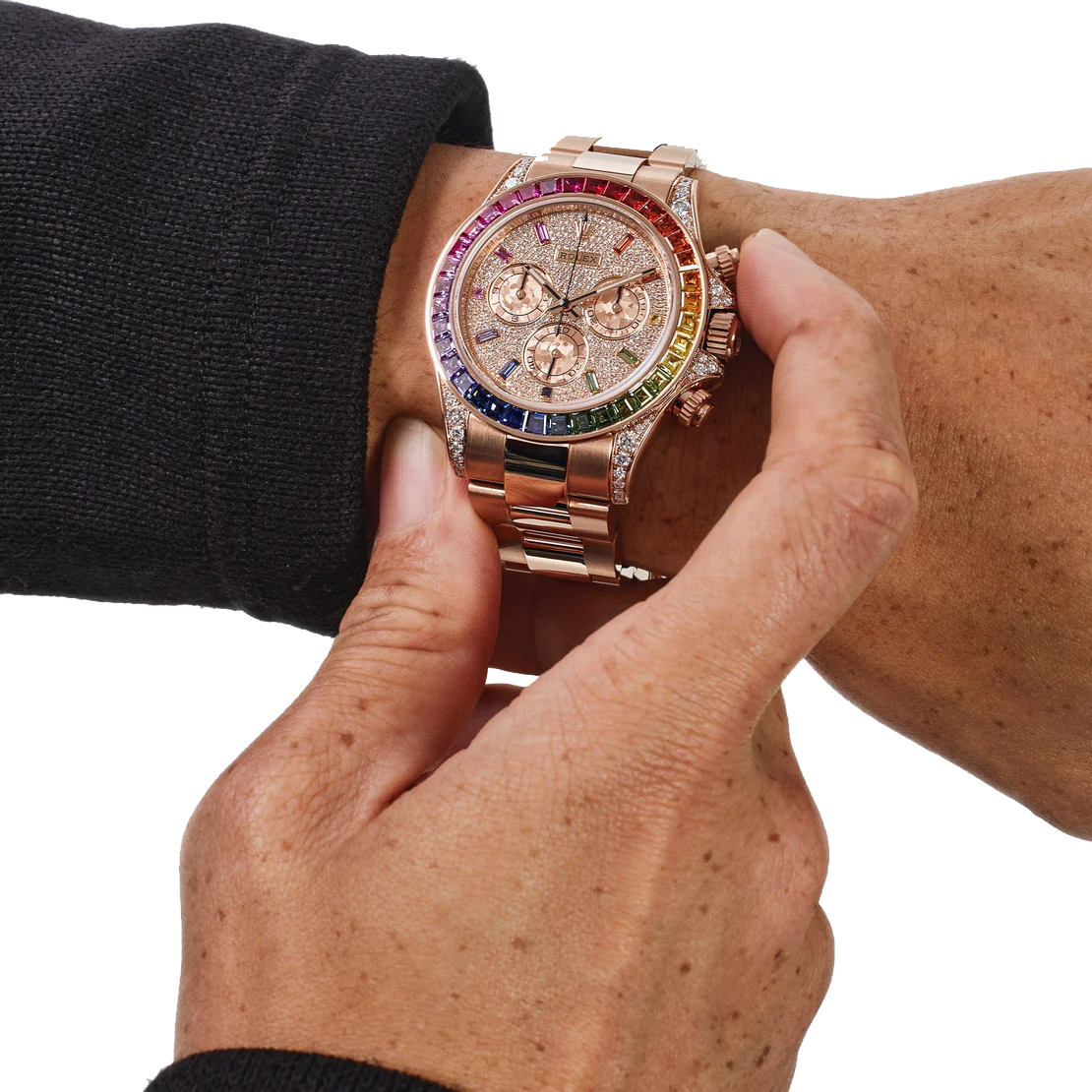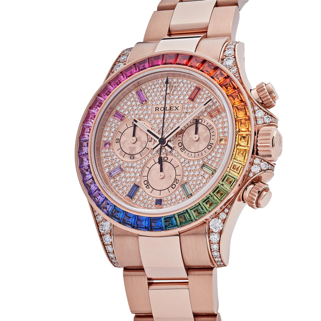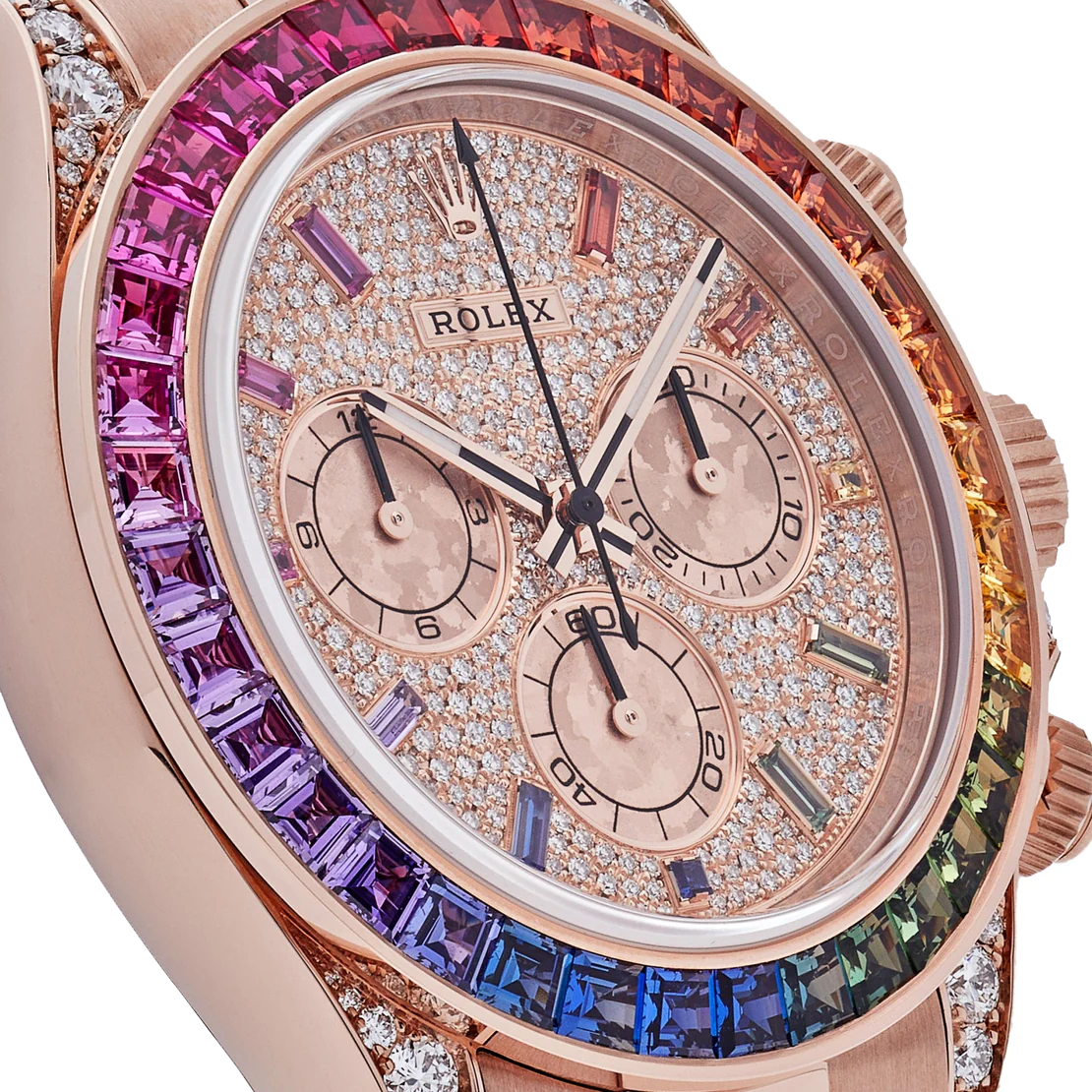 Rolex Daytona 116595RBOW ‘Rainbow’ Rose Gold Pave Diamond Dial Sapphire Bezel