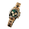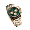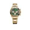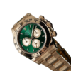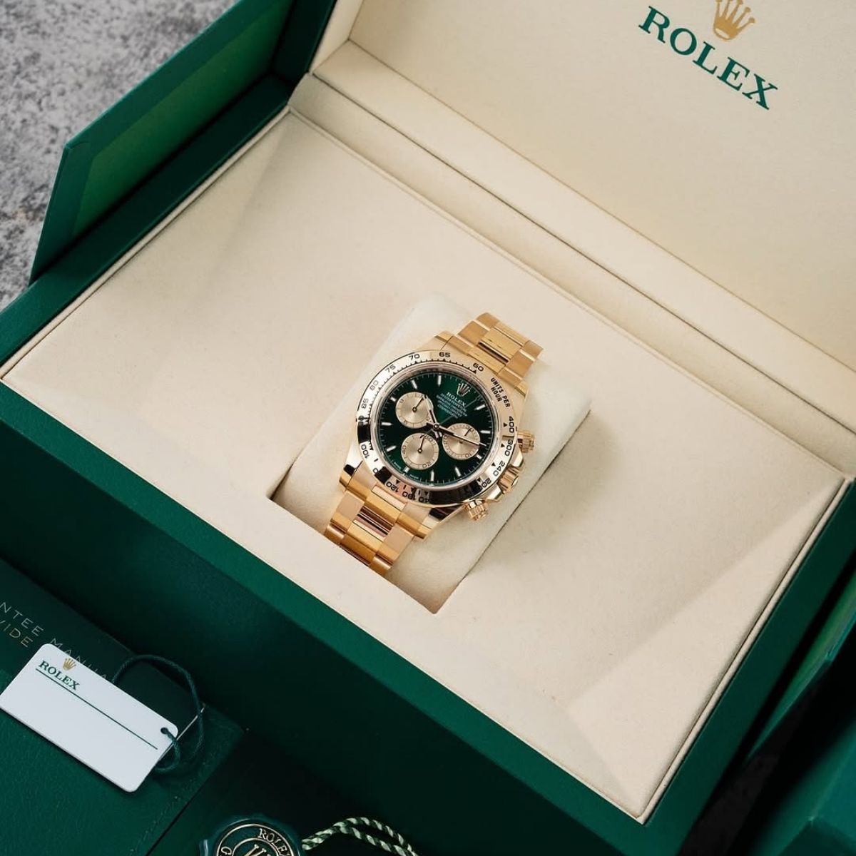 The Rolex Daytona 126508 in 18k yellow gold with a green sunburst dial is a bold and luxurious update to one of the brand’s most iconic chronographs. This reference continues the legacy of the highly coveted “John Mayer” Daytona, updated in 2025 with subtle refinements and enhanced performance. The vivid green dial—often celebrated for its radiant sunray finish—features gold-trimmed subdials and luminous hour markers, offering both visual richness and legibility.