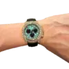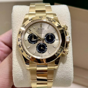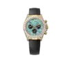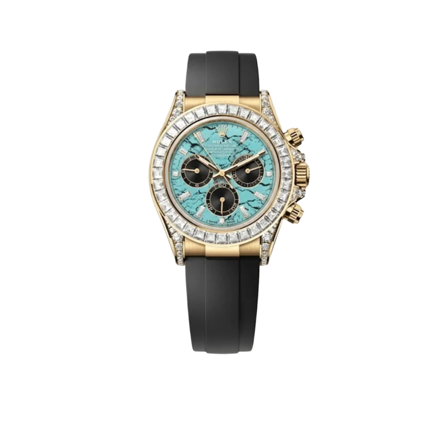 This 40mm chronograph is powered by Rolex’s updated Caliber 4131, which boasts a 72-hour power reserve, improved efficiency, and anti-shock performance, while maintaining COSC-certified precision. The watch is fitted with a black Oysterflex bracelet, blending the flexibility and comfort of elastomer with the stability of an internal metal blade. Finished with a yellow gold Oysterlock clasp, the 126538TBR with turquoise dial is a bold statement of modern luxury—perfect for collectors who want a Daytona that stands out from every angle.