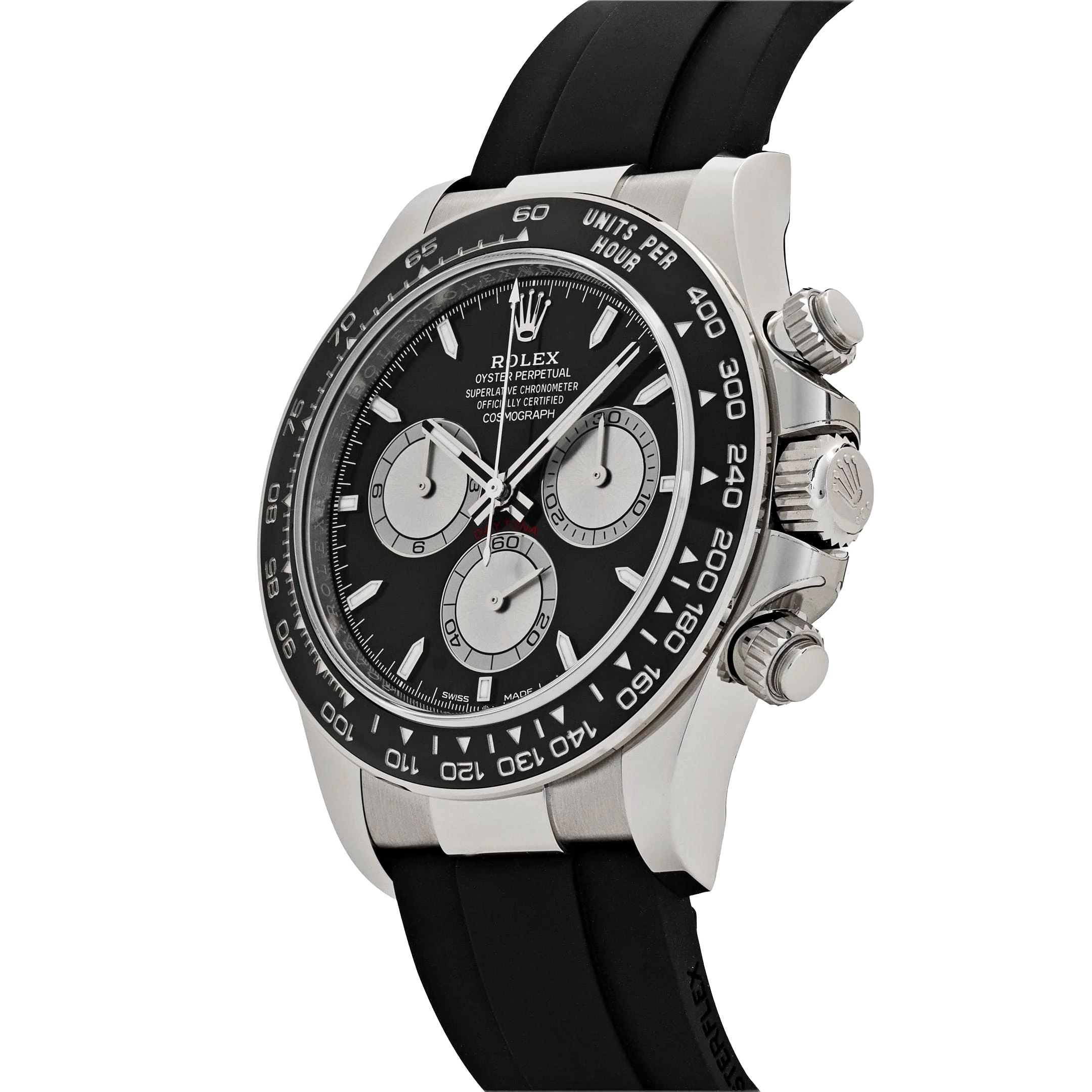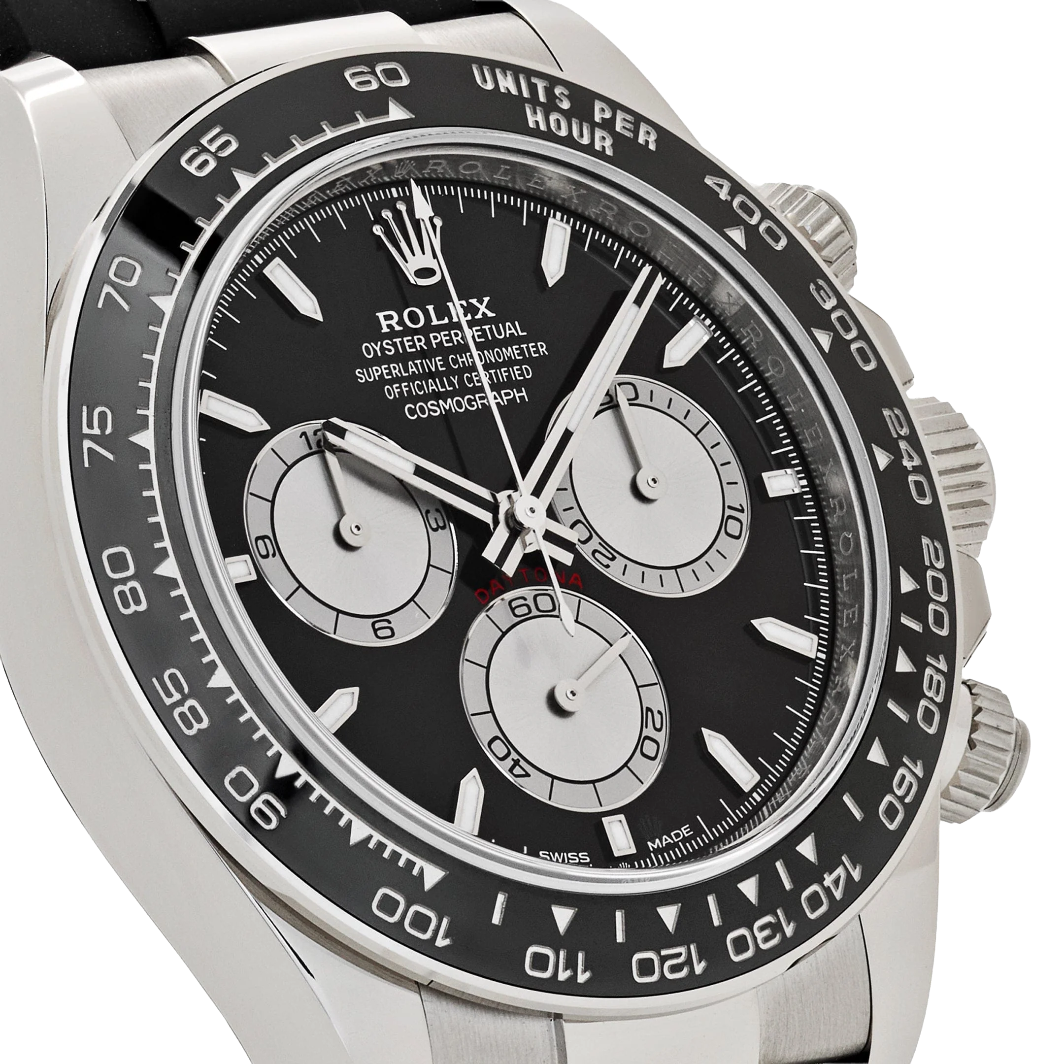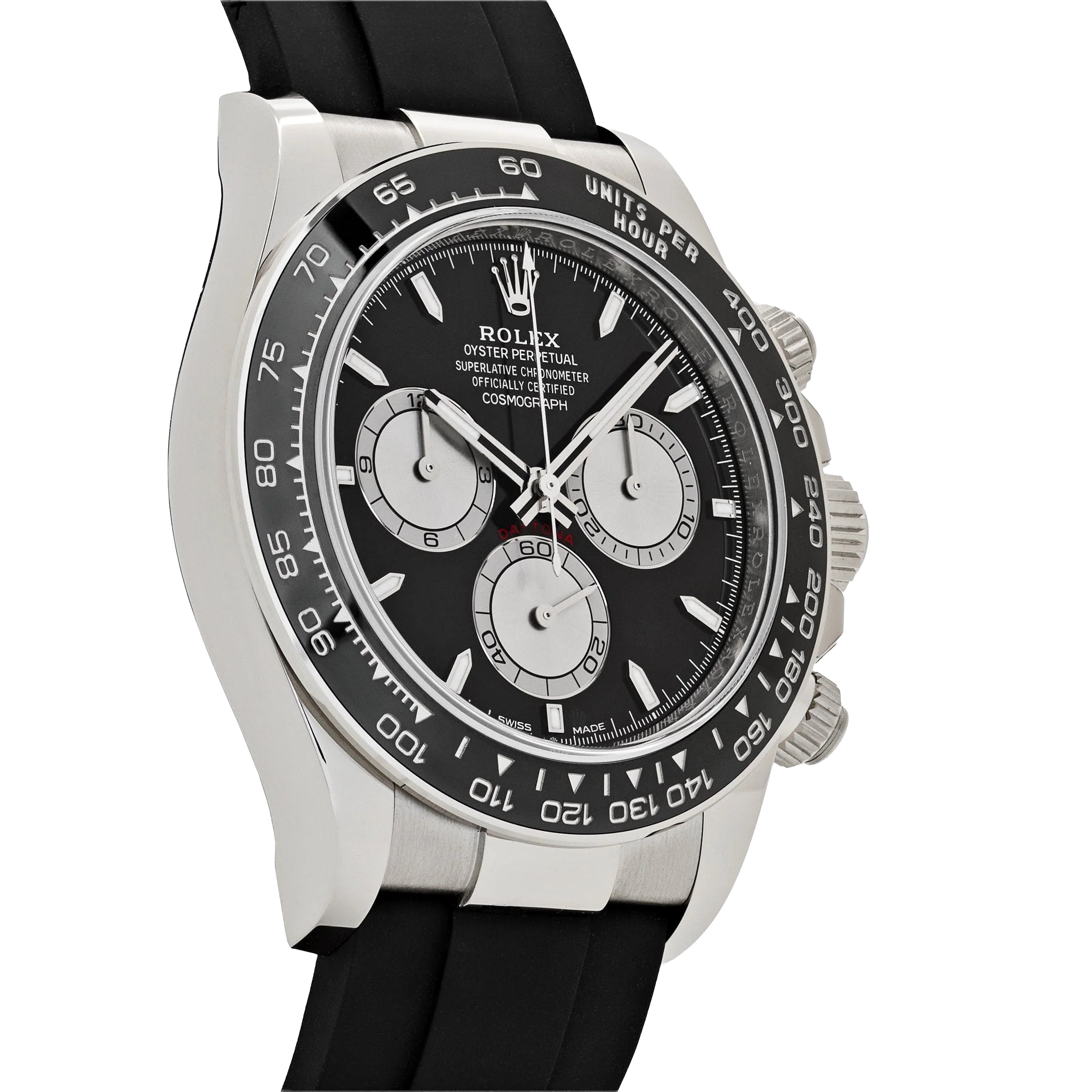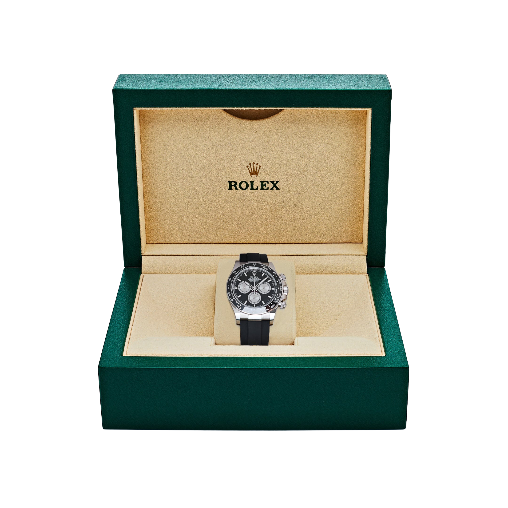 Inside, the watch is powered by the in-house Caliber 4131, known for its precision, reliability, and impressive 72-hour power reserve. The Daytona’s classic three-register layout, combined with its luxurious materials and high-performance movement, makes the 126519LN a perfect choice for collectors who value both functionality and enduring design.