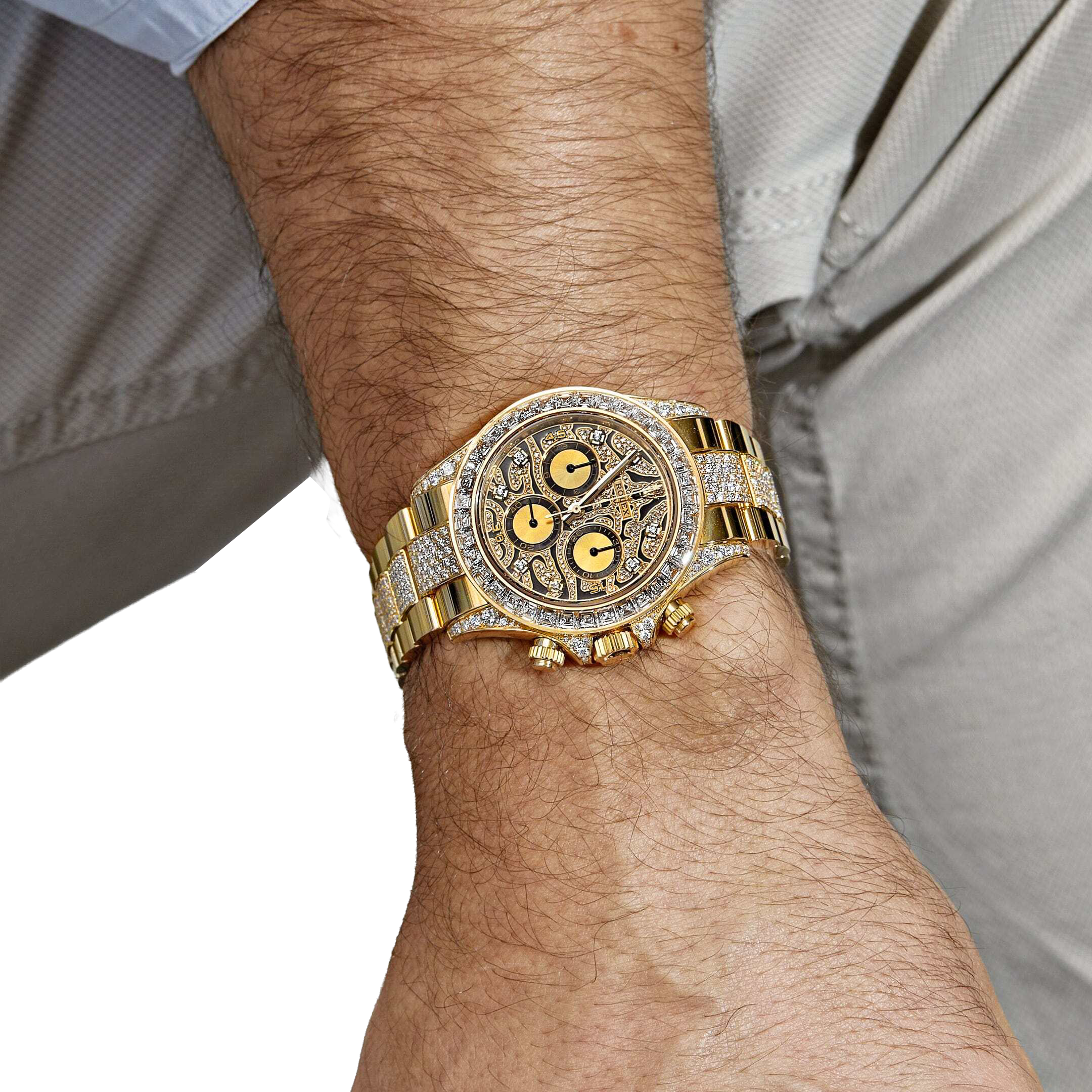 Rolex Daytona 'Eye of the Tiger' 116598TBR Yellow Gold Diamond Dial with Diamond Bracelet (Super Clone)