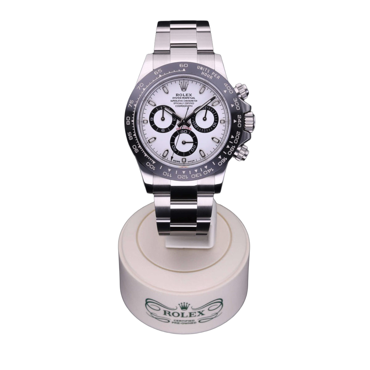 Since its launch in 1963, the Oyster Perpetual Cosmograph Daytona has been the benchmark for those with a passion for driving and speed. Today, this iconic chronograph is legendary for its reliability thanks to its high-performance mechanical movement entirely developed and manufactured by Rolex. Using the tachymetric scale on the bezel, the wearer can measure time intervals or determine average speeds.