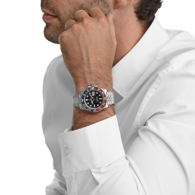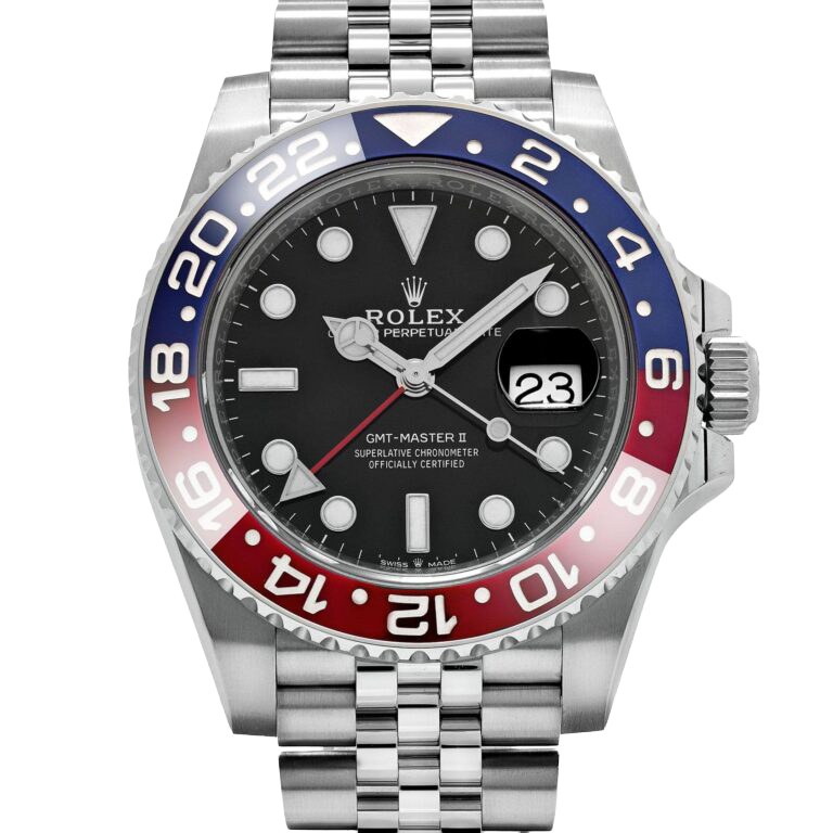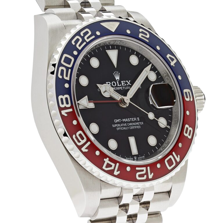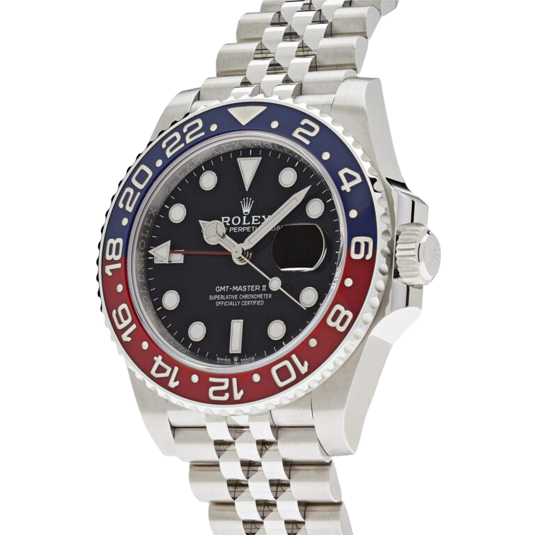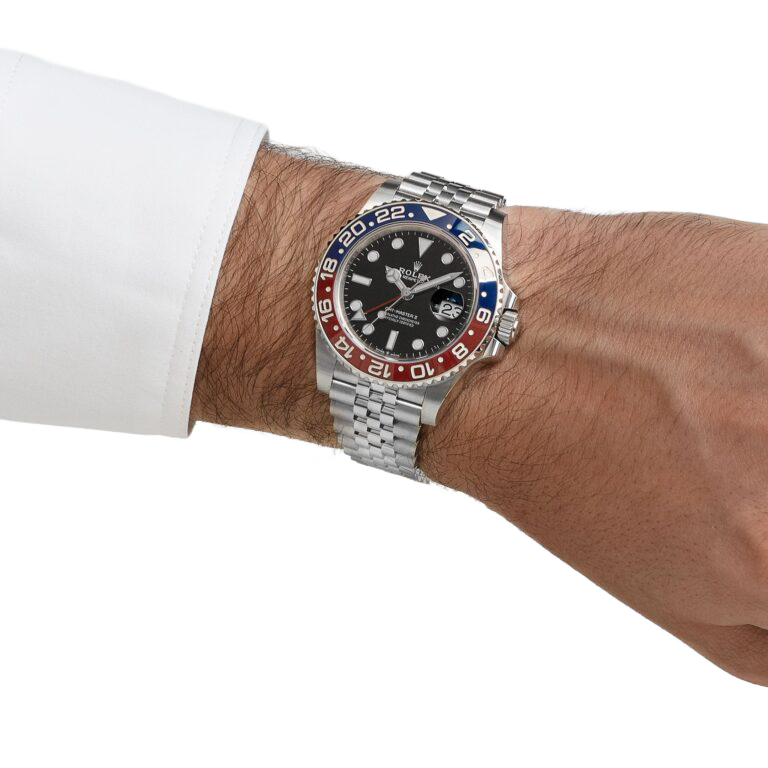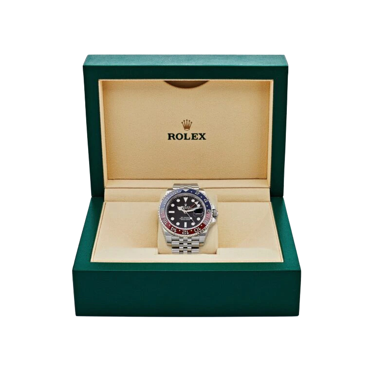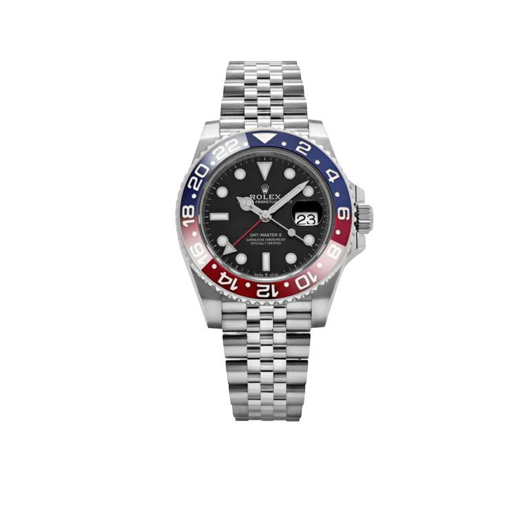 A modern icon in Rolex’s lineup, the GMT-Master II 126710BLRO revives the legendary “Pepsi” bezel in a striking Cerachrom execution. The red-and-blue colorway, historically associated with early GMT-Master models, is flawlessly rendered in scratch-resistant ceramic, offering exceptional durability while maintaining the vintage aesthetic collectors admire. Crafted from Rolex’s signature Oystersteel, the 40mm case balances robustness with elegance, complemented by the highly sought-after Jubilee bracelet, a preference among purists for its classy presence.