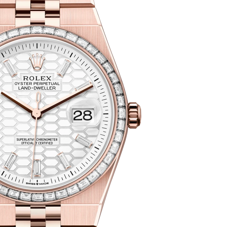This dial is adorned with a honeycomb motif with a satin finish. Its creation calls on traditional craftsmanship and high-technology methods, all mastered in-house.