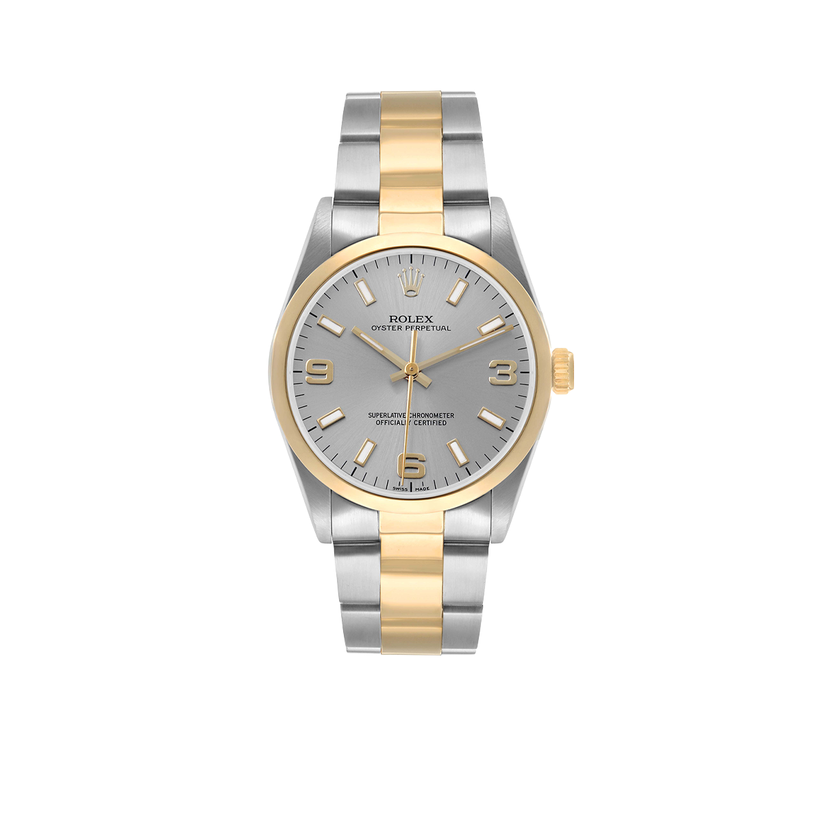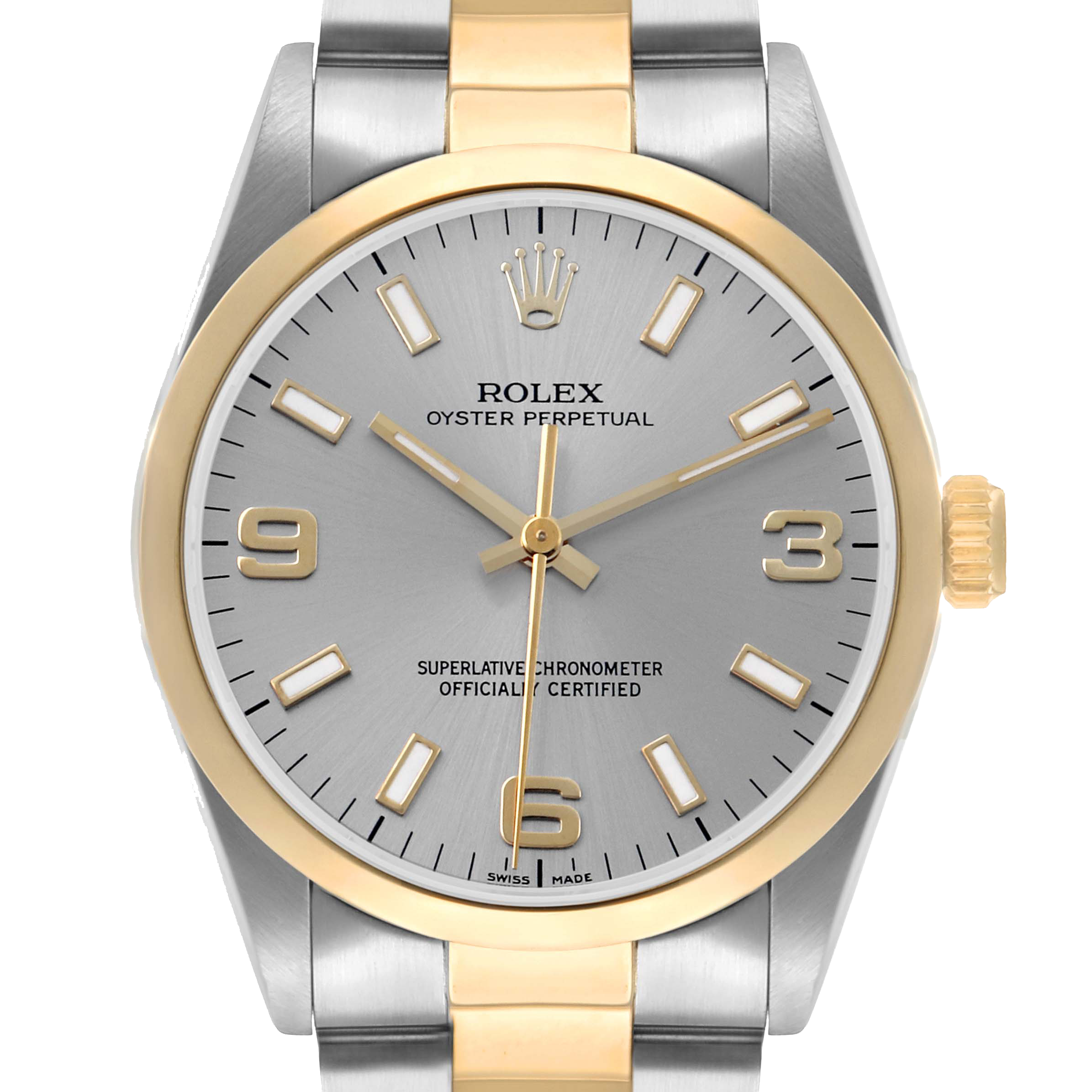 Rolex Oyster Perpetual 34mm Steel Yellow Gold Slate Dial Mens Watch 14203