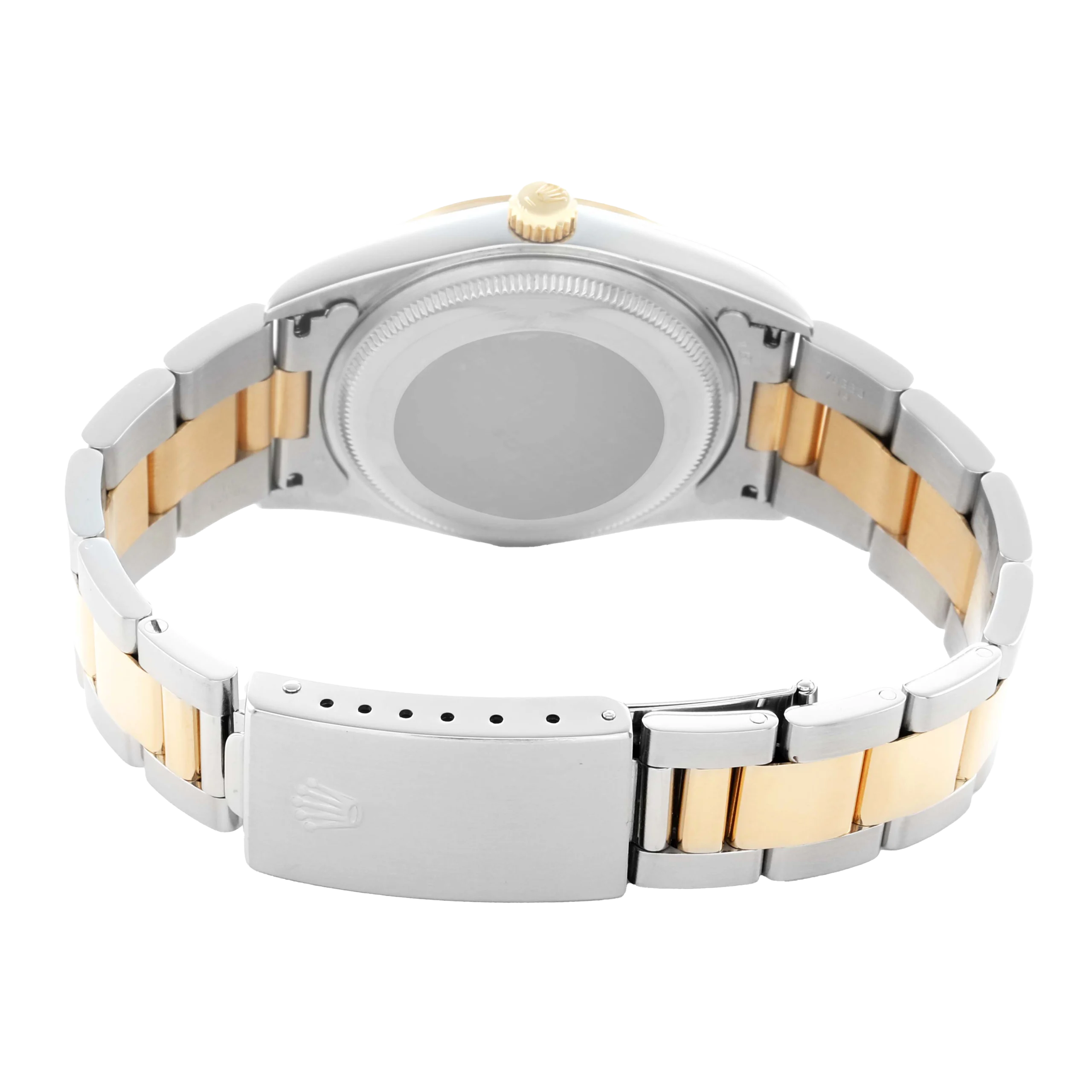 Case: Stainless steel and 18K yellow gold oyster case 34.0 mm in diameter. Rolex logo on the 18k yellow gold crown.