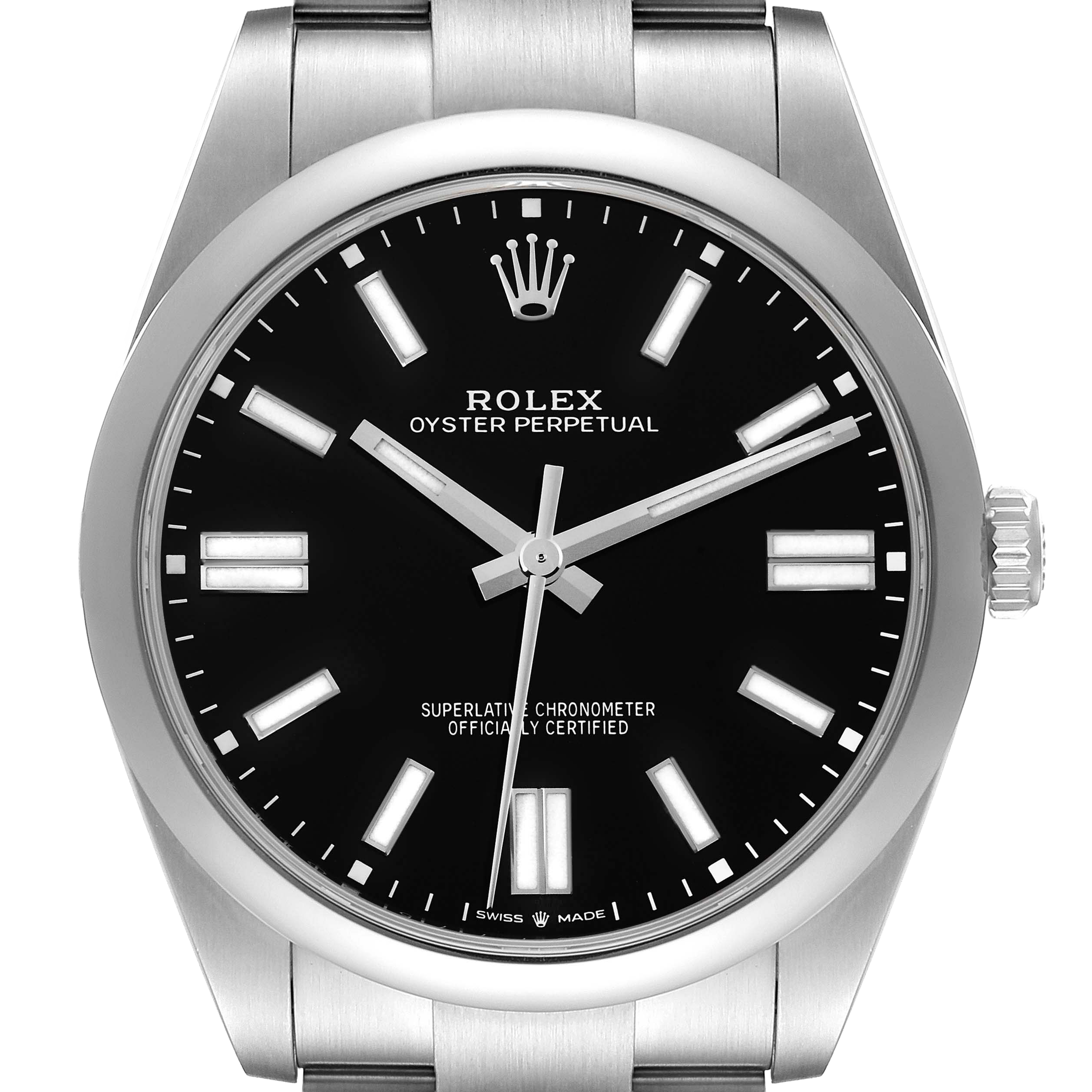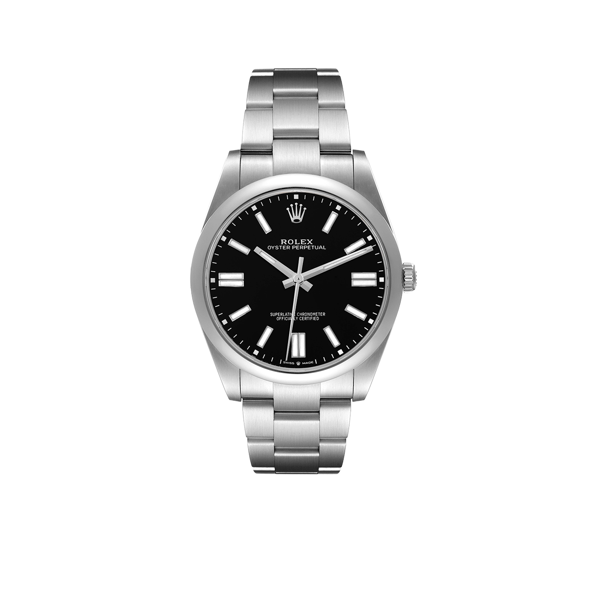 Case: Stainless steel oyster case 41.0 mm in diameter. Rolex logo on the crown.