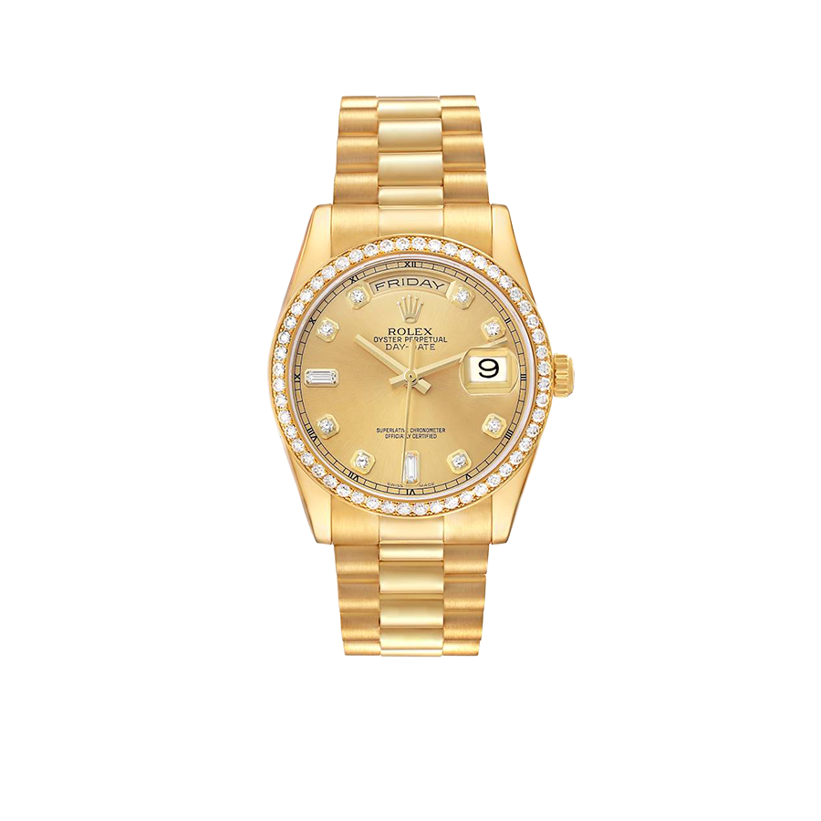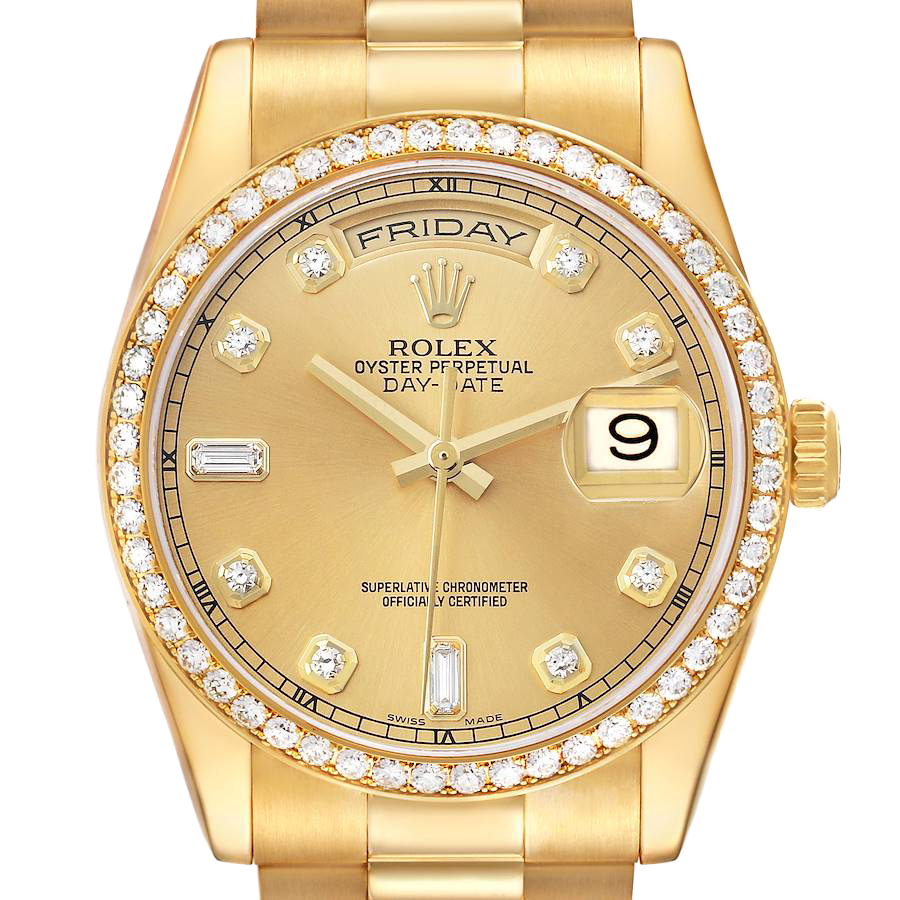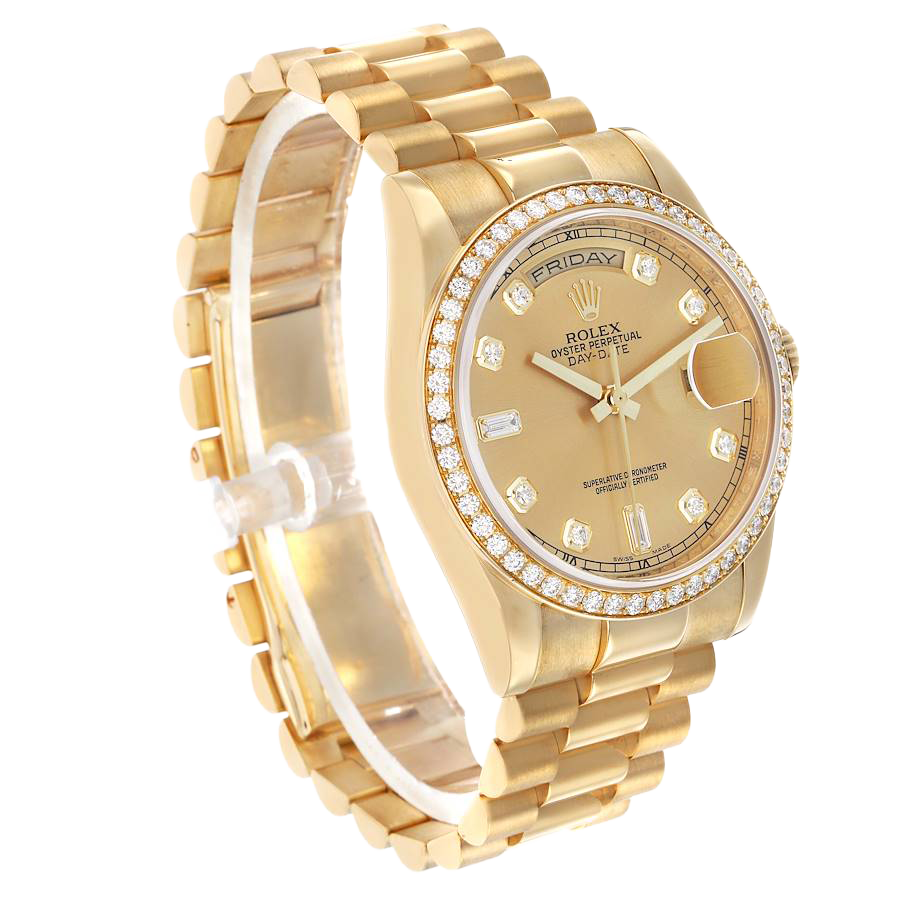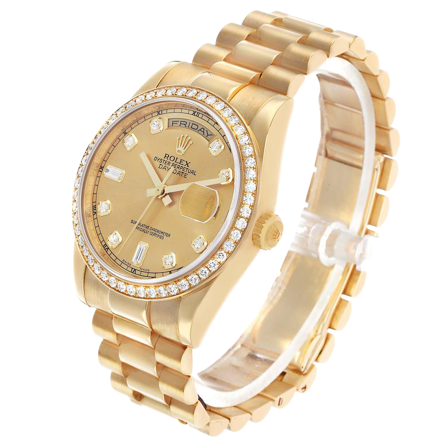 Rolex President Day-Date 36mm Yellow Gold Diamond Bezel Mens Watch 118348