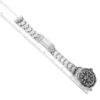 Bracelet: Stainless steel oyster bracelet with flip-lock clasp. Fits an 8 1/4″ wrist.