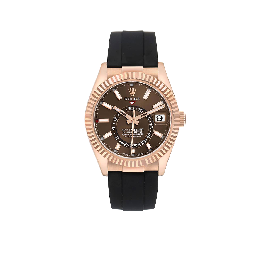Model Name: Rolex Sky-Dweller Rose Gold Chocolate Brown Dial Mens Watch 326235