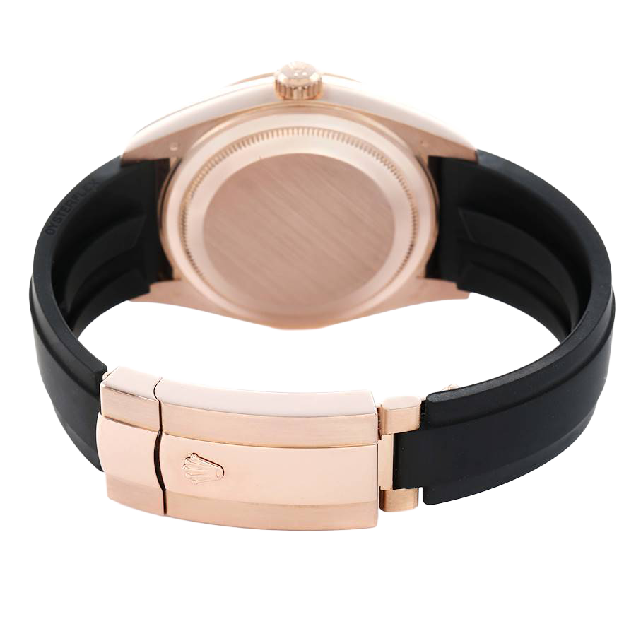 Case: 18k rose gold oyster case 42.0 mm in diameter. Rolex logo on the screw-down twinlock crown.