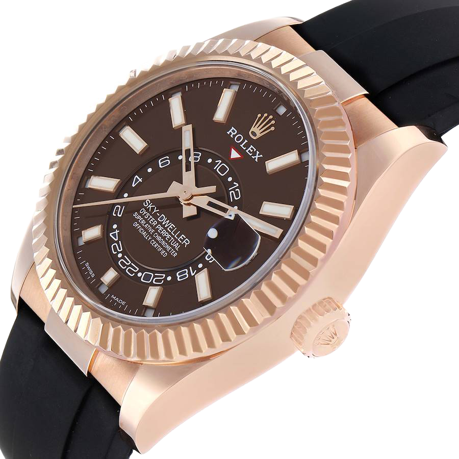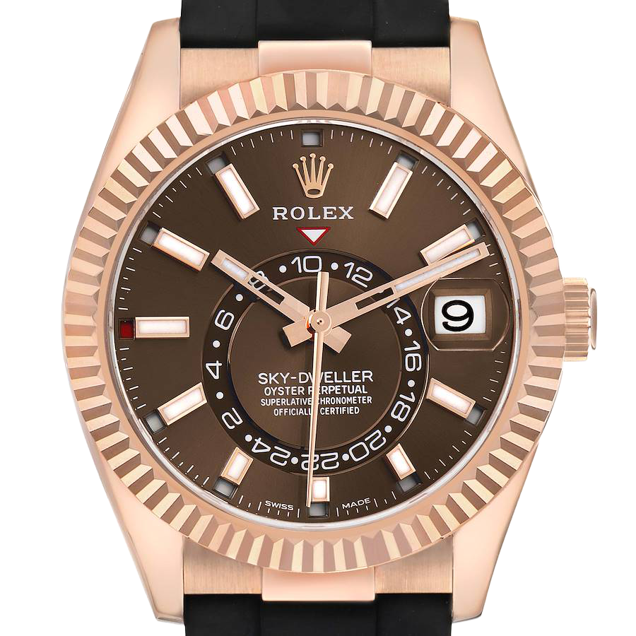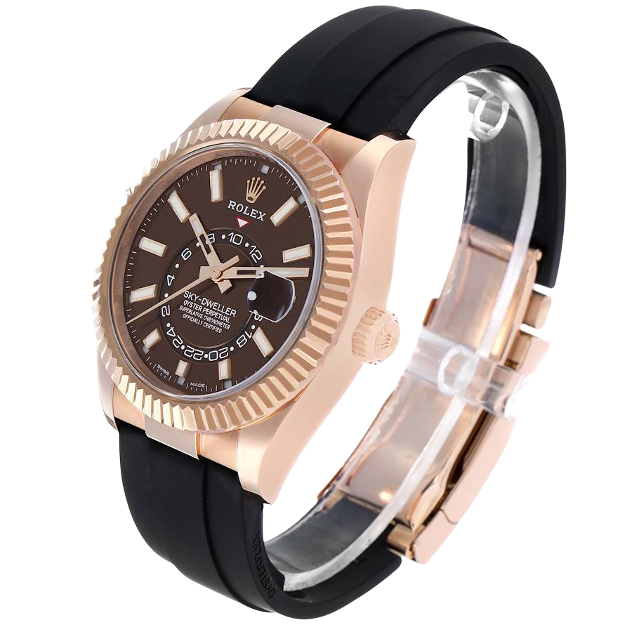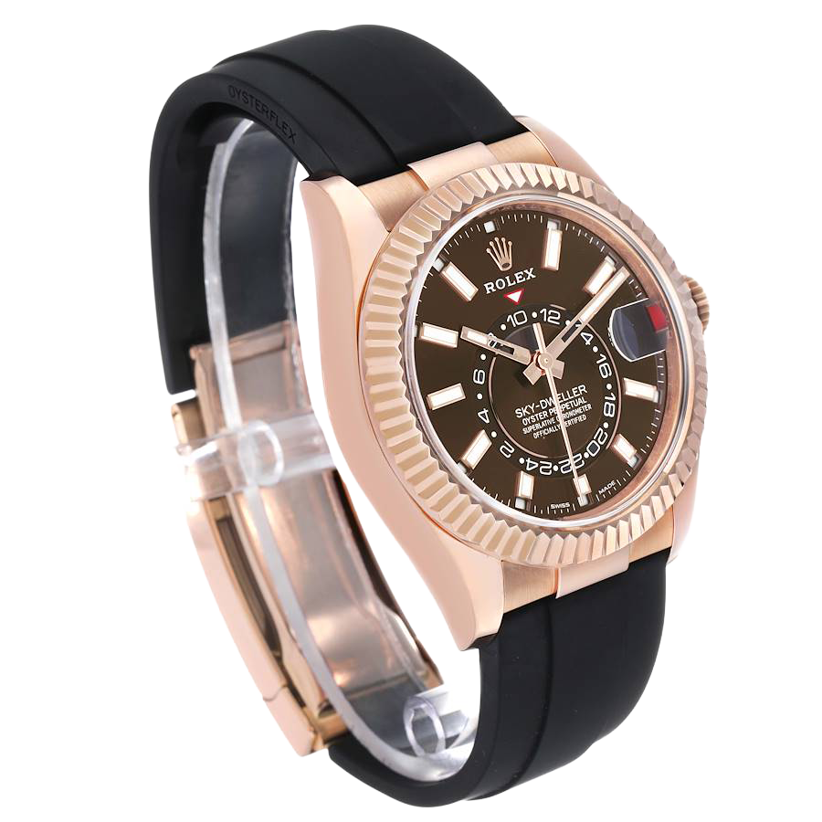 Rolex Sky-Dweller 42mm Rose Gold Chocolate Brown Dial Mens Watch 326235