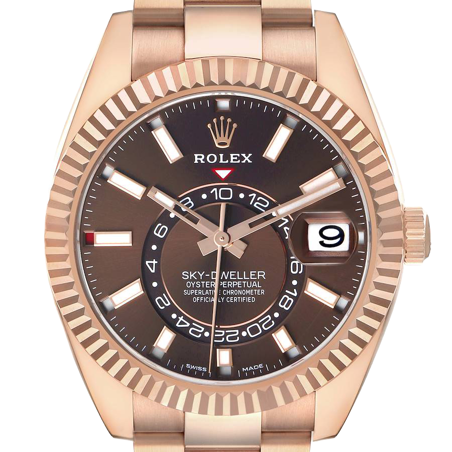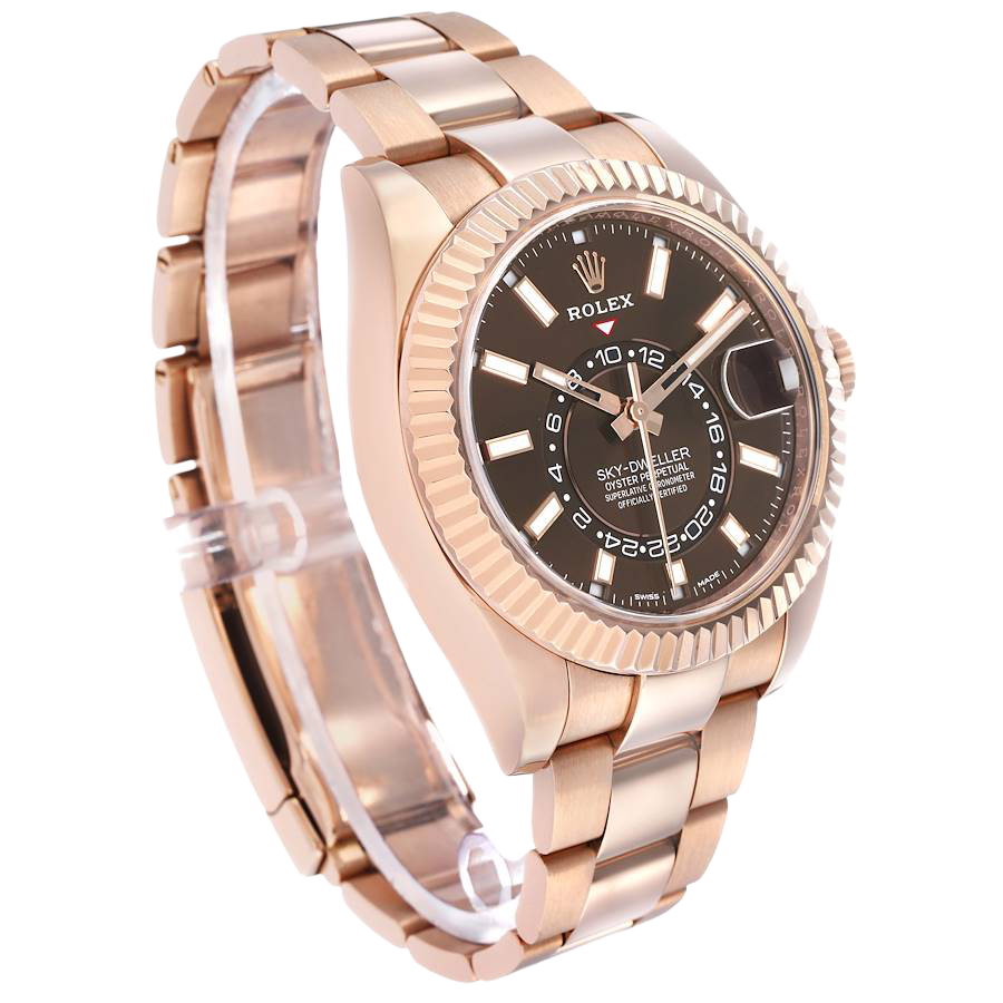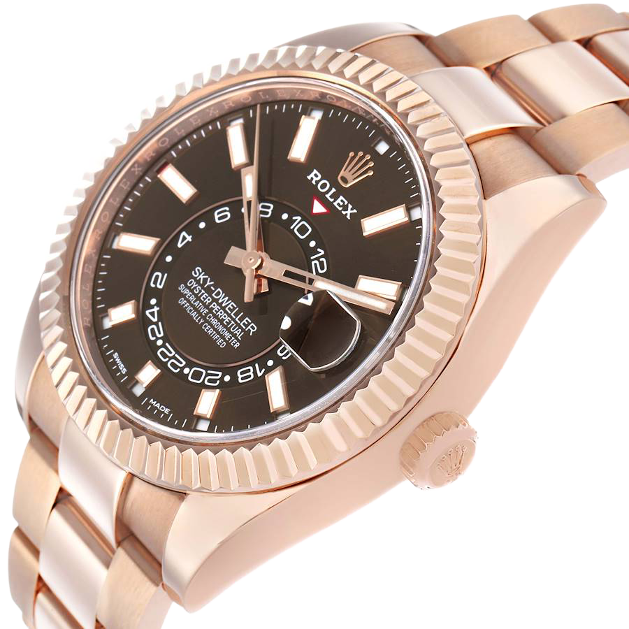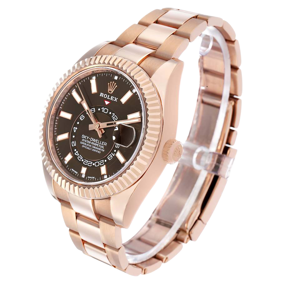 Rolex Sky-Dweller 42mm Rose Gold Chocolate Brown Dial Mens Watch 326935