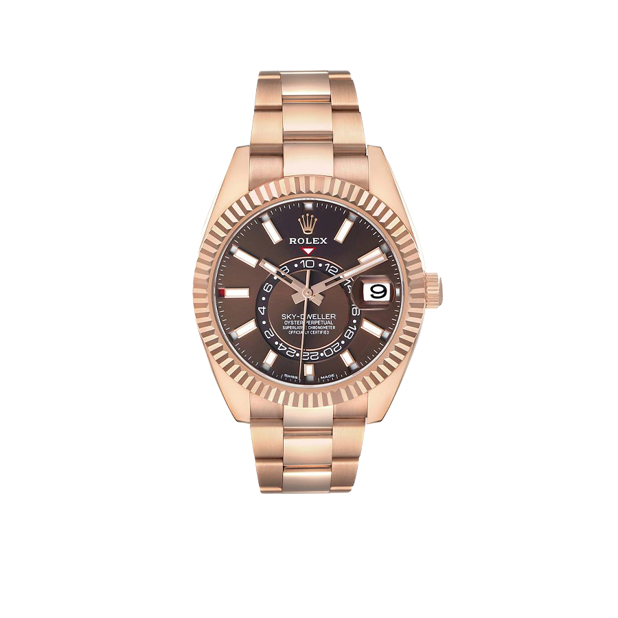 Model Name: Rolex Sky-Dweller Rose Gold Chocolate Brown Dial Mens Watch 326935