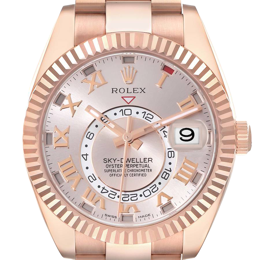 Rolex Sky-Dweller 42mm Rose Gold Sundust Dial Mens Watch 326935