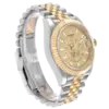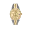 Bracelet: Stainless steel and 18k yellow gold jubilee bracelet with an oysterlock clasp. Fits up to a 7 3/4″ wrist.