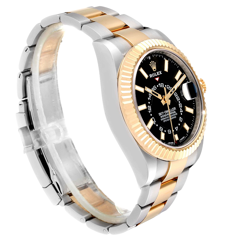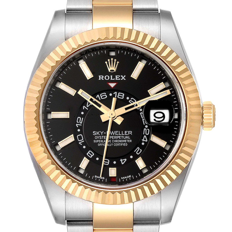 Rolex Sky Dweller 42mm Yellow Gold Steel Black Dial Mens Watch 326933