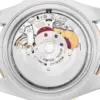 Bracelet: Stainless steel and 18K yellow gold oyster bracelet with flip-lock clasp. Fits a 7 3/4″ wrist.