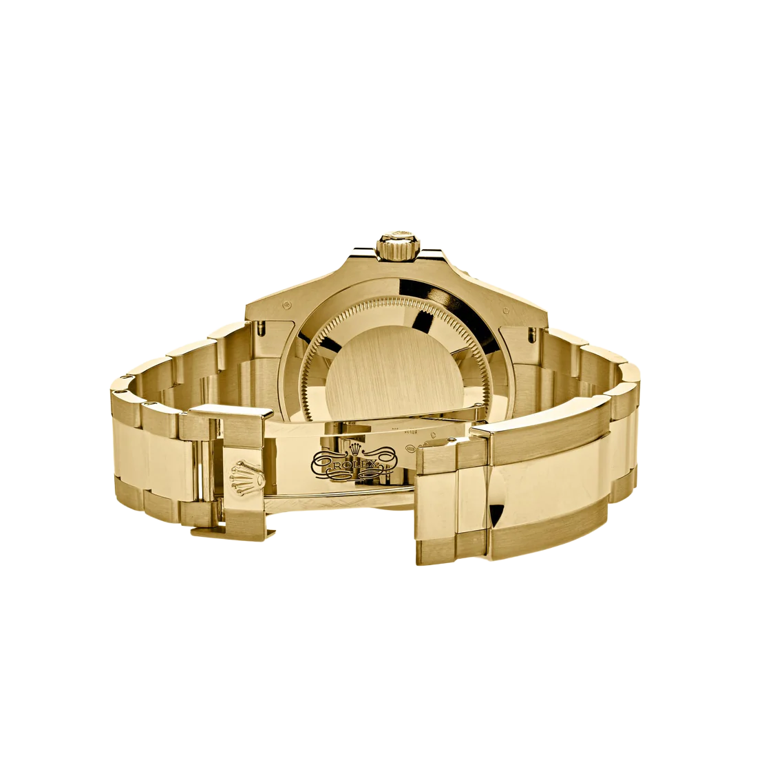 Bracelet: 18k yellow gold oyster bracelet with a flip-lock clasp. Fits an 8″ wrist.
