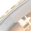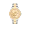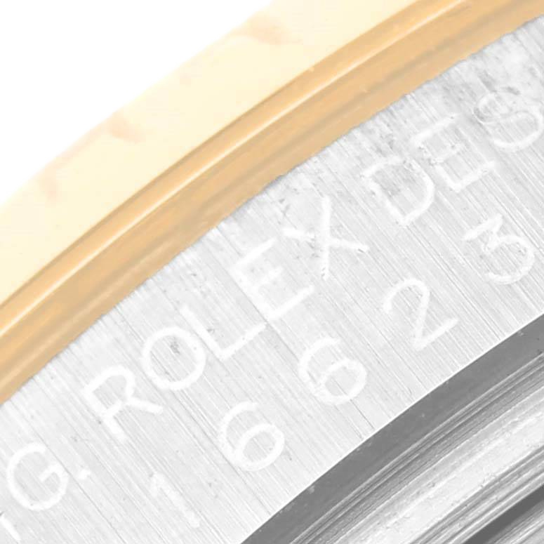 Bracelet: Stainless steel and 18k yellow gold oyster bracelet with flip-lock clasp. Fits 7″ wrist.
