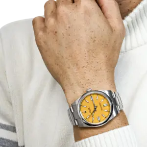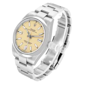 Rolex Oyster Perpetual 41mm Stainless Steel Yellow Dial Men Watch 124300-0004